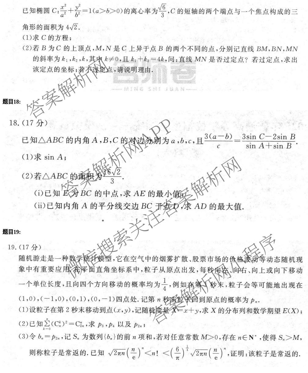 衡水名师卷·高考模拟调研卷 2025年普通高等学校招生全国统一考试模拟(六)6数学(双菱形)试题,目前分科卷答案网已经汇总了衡水名师卷·高考模拟调研卷 2025年普通高等学校招生全国统一考试模拟(六)6数学(双菱形)试题的各科答案和试卷,获取更多衡水名师卷答案解析,请在关注本站。