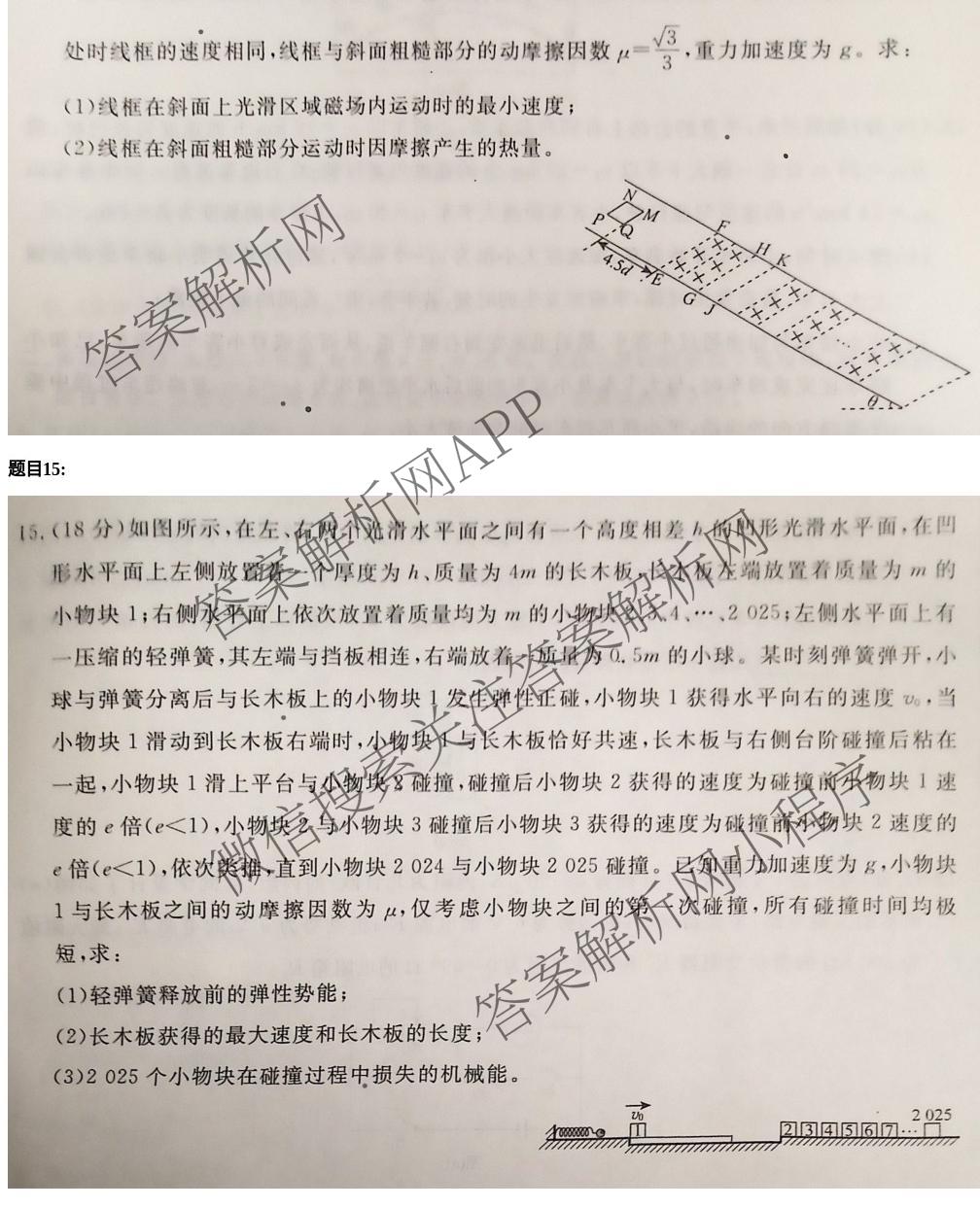 - [衡水名师卷]高考模拟调研卷 2025年普通高等学校招生全国统一考试模拟(六)6物理(空心菱形)答案