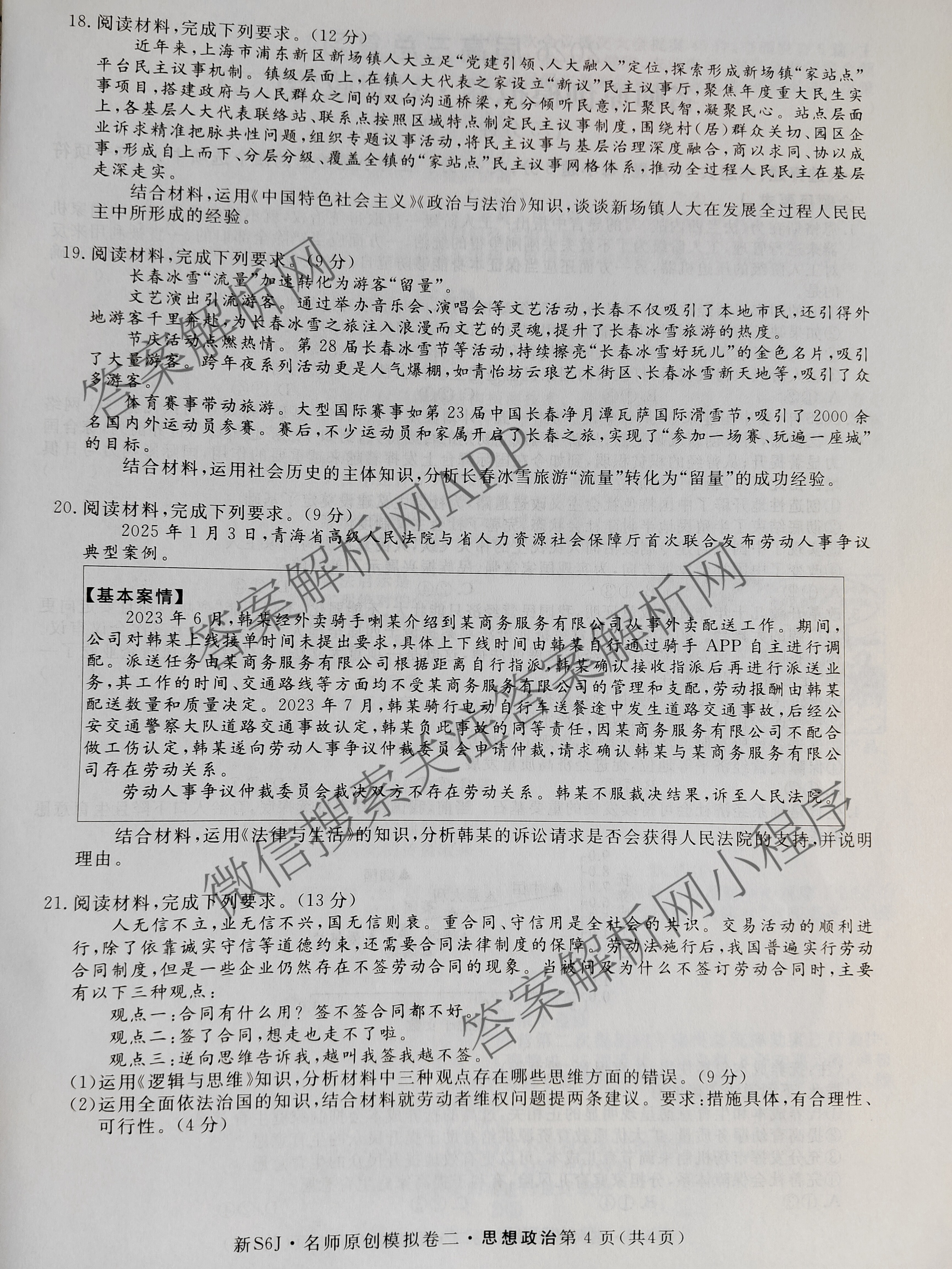 2026届高三总复习·名师原创模拟(二)2政治(新S6J)试题,目前分科卷答案网已经汇总了2026届高三总复习·名师原创模拟(二)2政治(新S6J)试题的各科答案和试卷,获取更多高三总复习·名师原创模拟答案解析,请在关注本站。