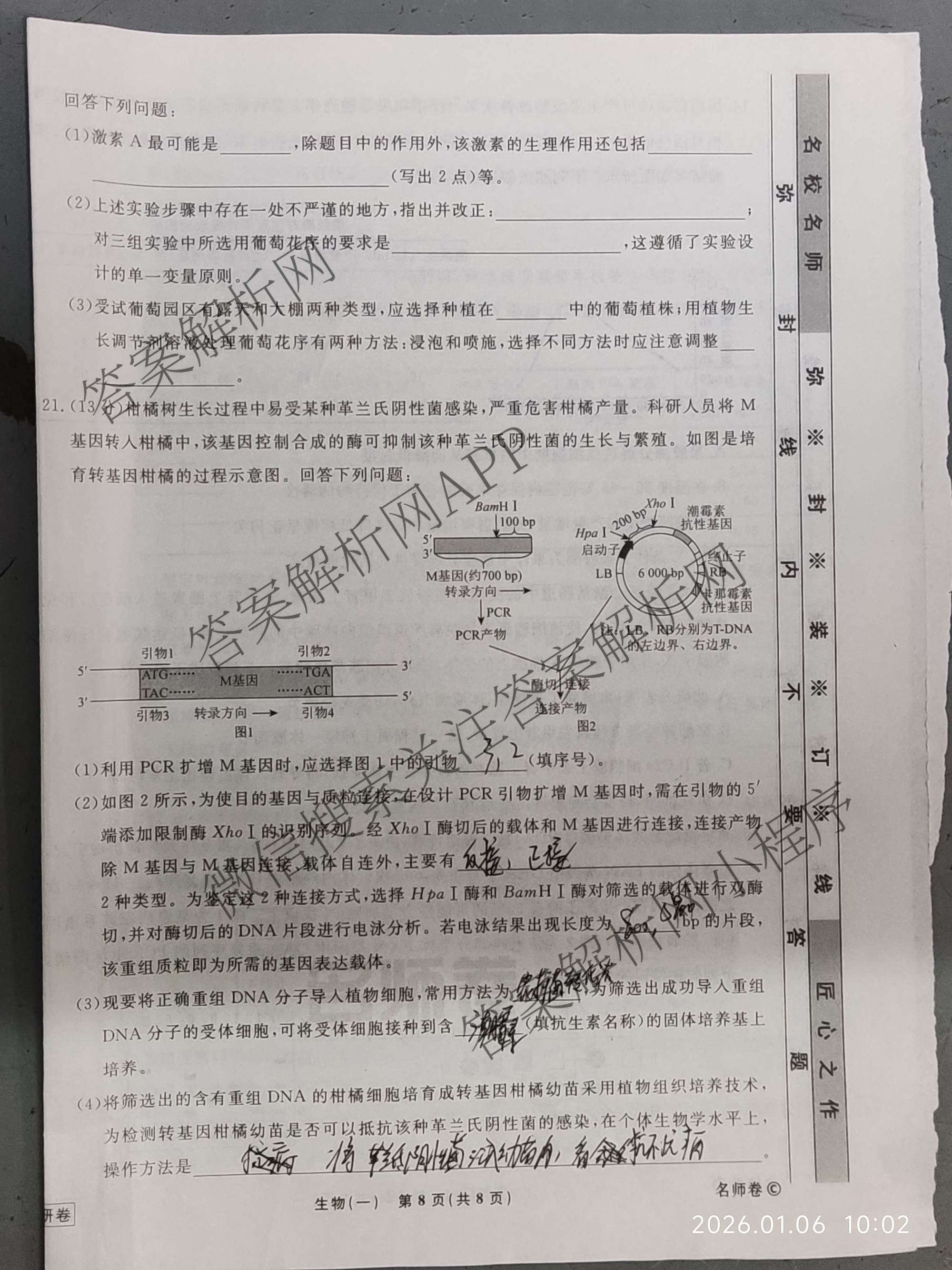 衡水名师卷·高考模拟调研卷 2026年普通高中学业水平选择性考试模拟(一)1生物(※)试题,目前分科卷答案网已经汇总了衡水名师卷·高考模拟调研卷 2026年普通高中学业水平选择性考试模拟(一)1生物(※)试题的各科答案和试卷,获取更多衡水名师卷答案解析,请在关注本站。
