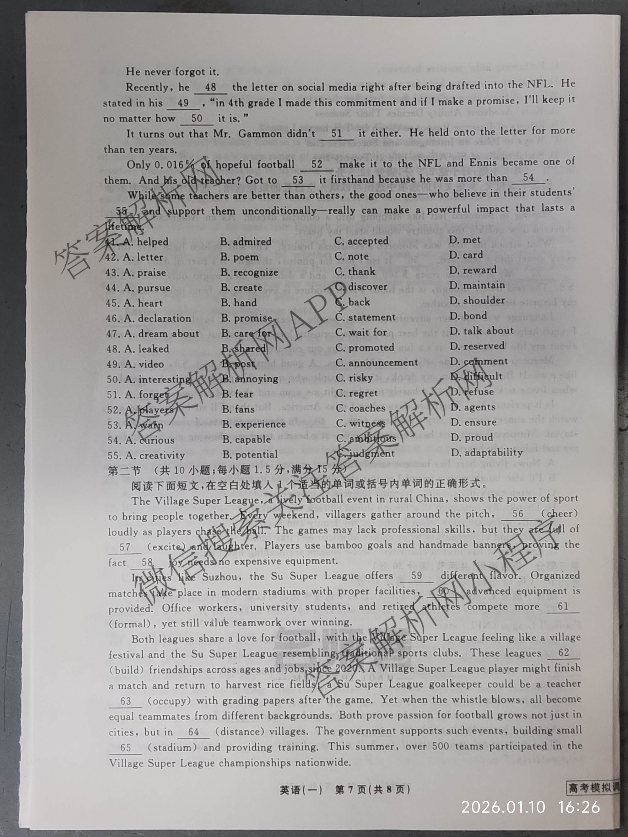 [高三][衡水名师卷]·高考模拟调研卷 2026年普通高等学校招生全国统一考试模拟试题(一)1英语(空心菱形)试题