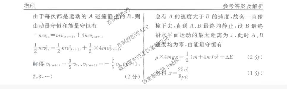 - [高三]衡水名师卷·高考模拟调研卷 2026年普通高中学业水平选择性考试模拟(一)1物理(菱形点)答案