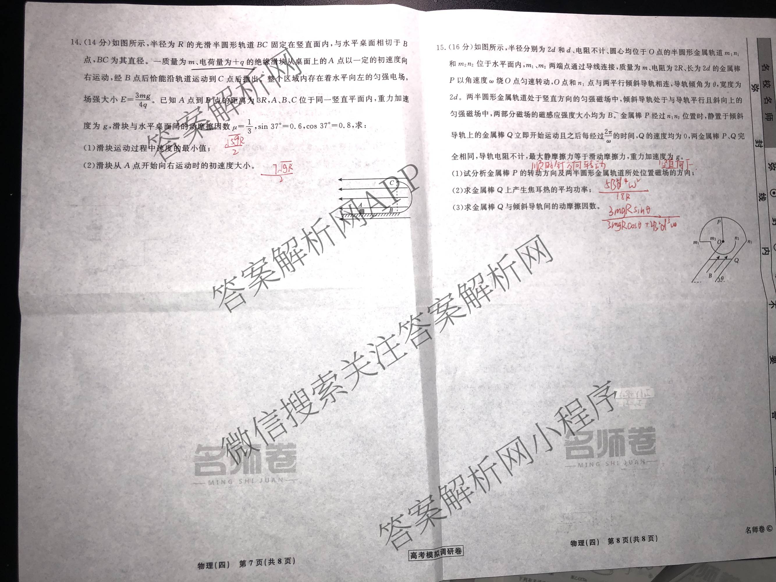 - (衡水名师卷)高考模拟调研卷 2026年普通高中学业水平选择性考试模拟试题(四)4物理(圆圈点)答案
