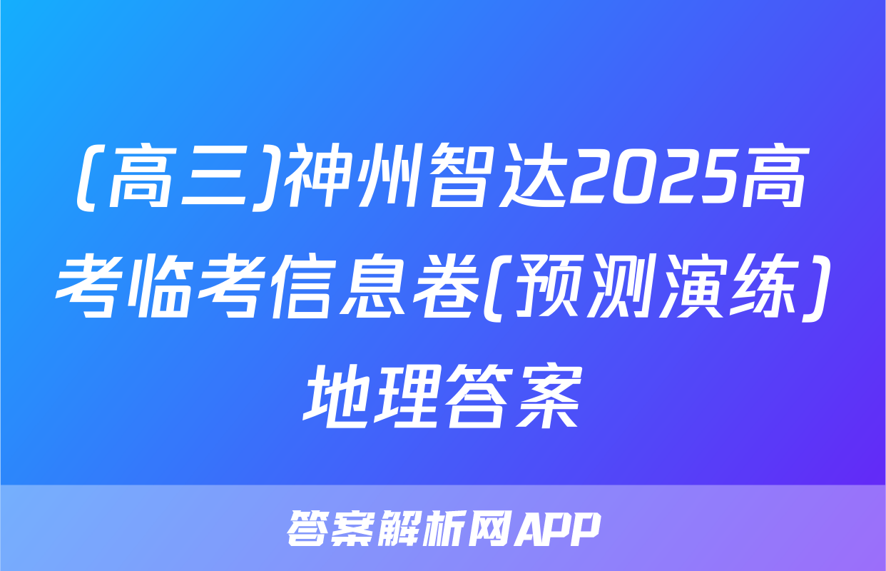 2025-12-05 23:01:45神州智达2026年普通高等学校招生全国统一考试(调研卷I)(含化学 地理 语文等9份)地理试题已经更新完毕了, 小刘老师汇总如下,供同学们参考学。-6A5280肯尼亚裂... -