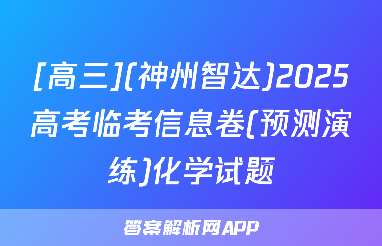 2025-12-07 23:48:082025-2026学年高三省级联测考试二(质检卷II)试卷及答案汇总(9科全)化学答案已经更新完毕了, 李云老师汇总如下,供同学们参考学。 -