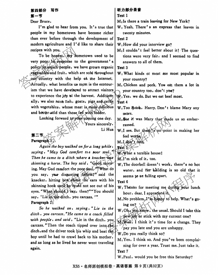 - 2025届([高三]总复习名师原创模拟) 英语(新S5)(二)2答案