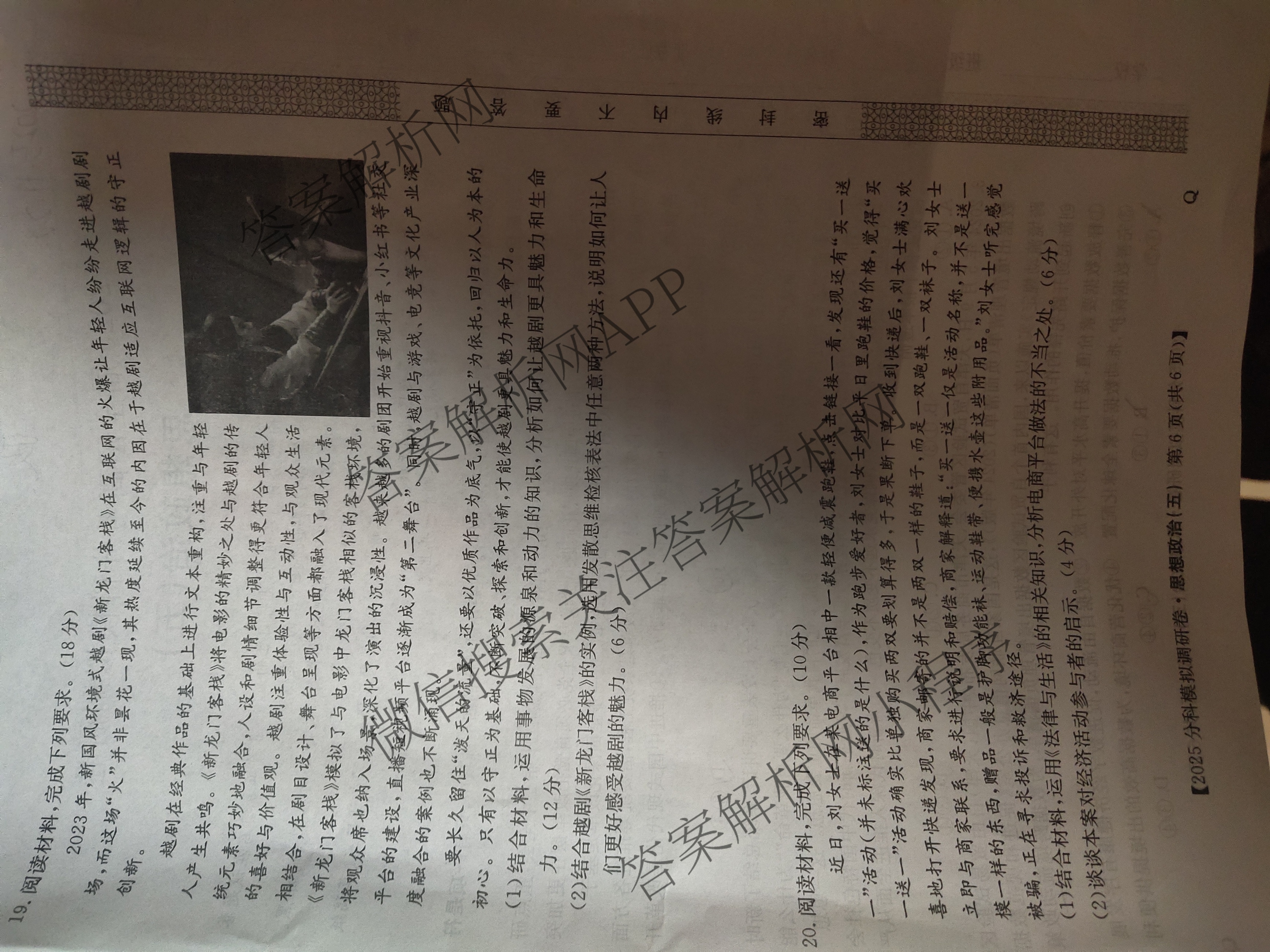 - [高三]2025届全国高考分科模拟调研卷(五)5政治(陕西)答案