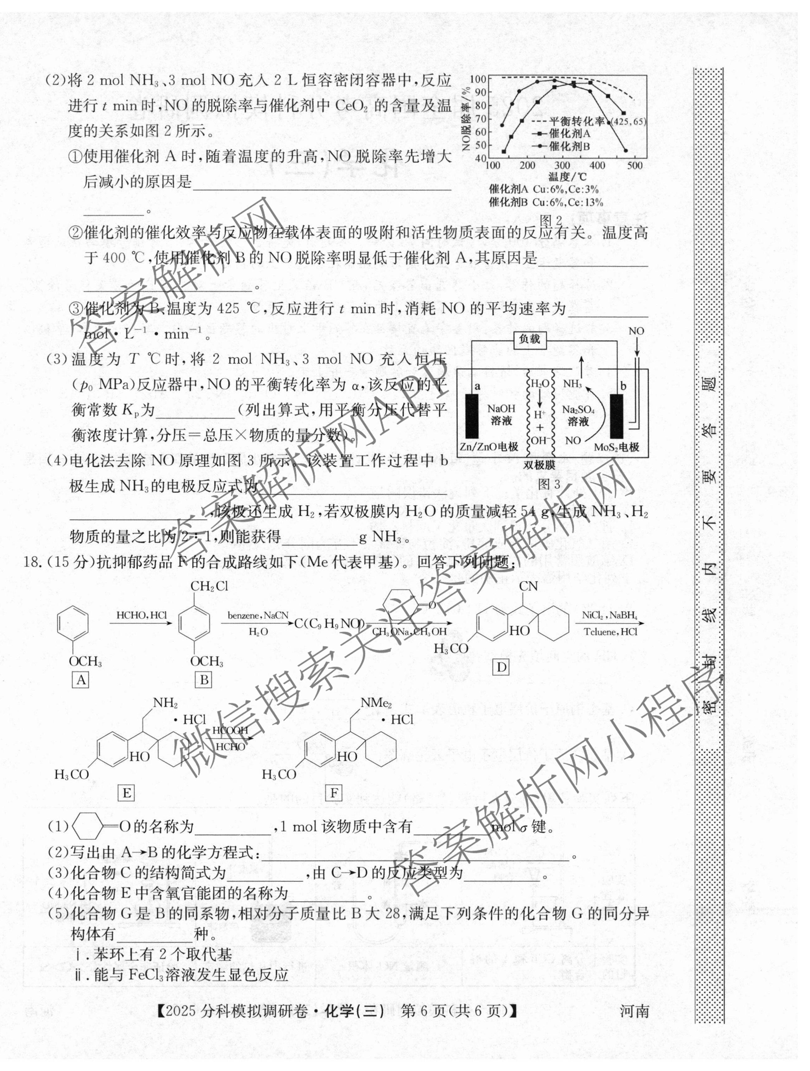 2025届全国高考分科模拟调研卷(三)3化学(河南)试题,目前分科卷答案网已经汇总了2025届全国高考分科模拟调研卷(三)3化学(河南)试题的各科答案和试卷,获取更多全国高考分科模拟调研卷答案解析,请在关注本站。