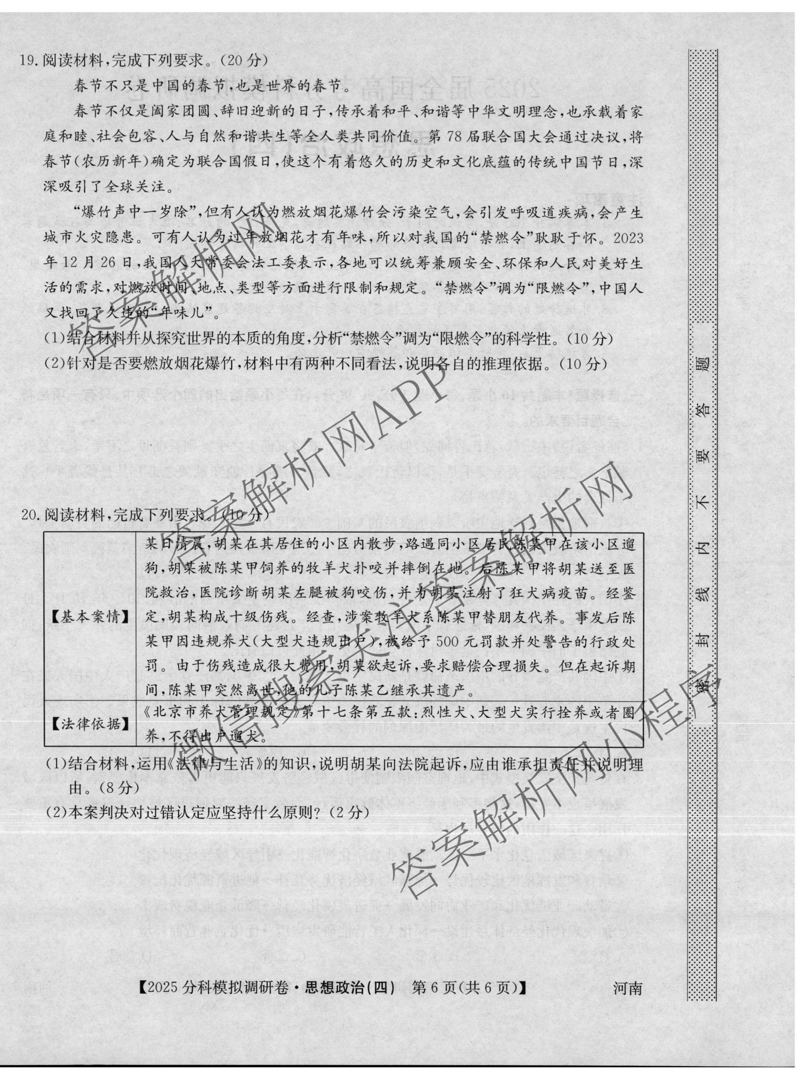 2025届(高三)[全国高考分科模拟调研卷](四)4政治(河南)试题