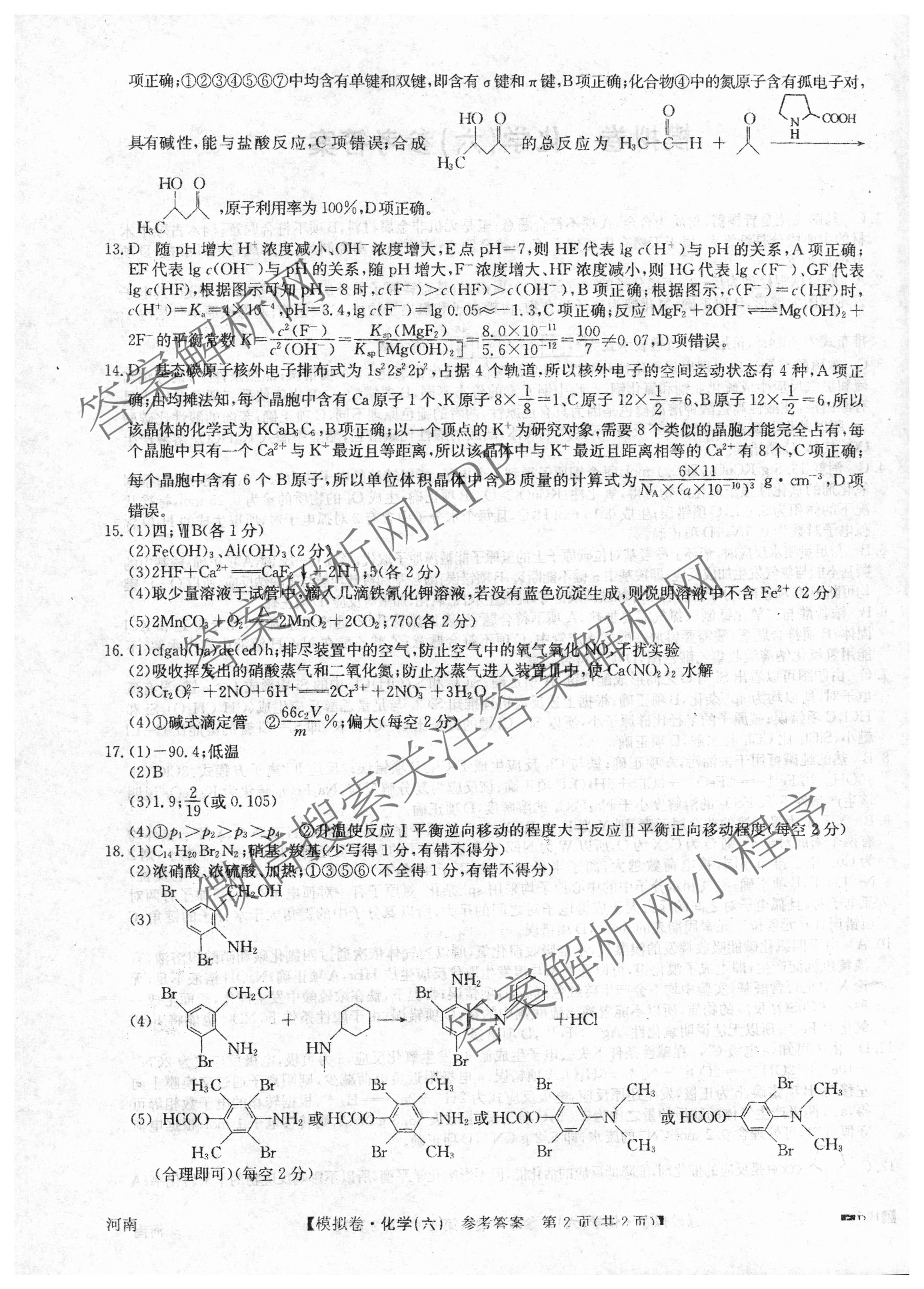 - 2025届[全国高考分科模拟调研卷](六)6化学(河南)答案
