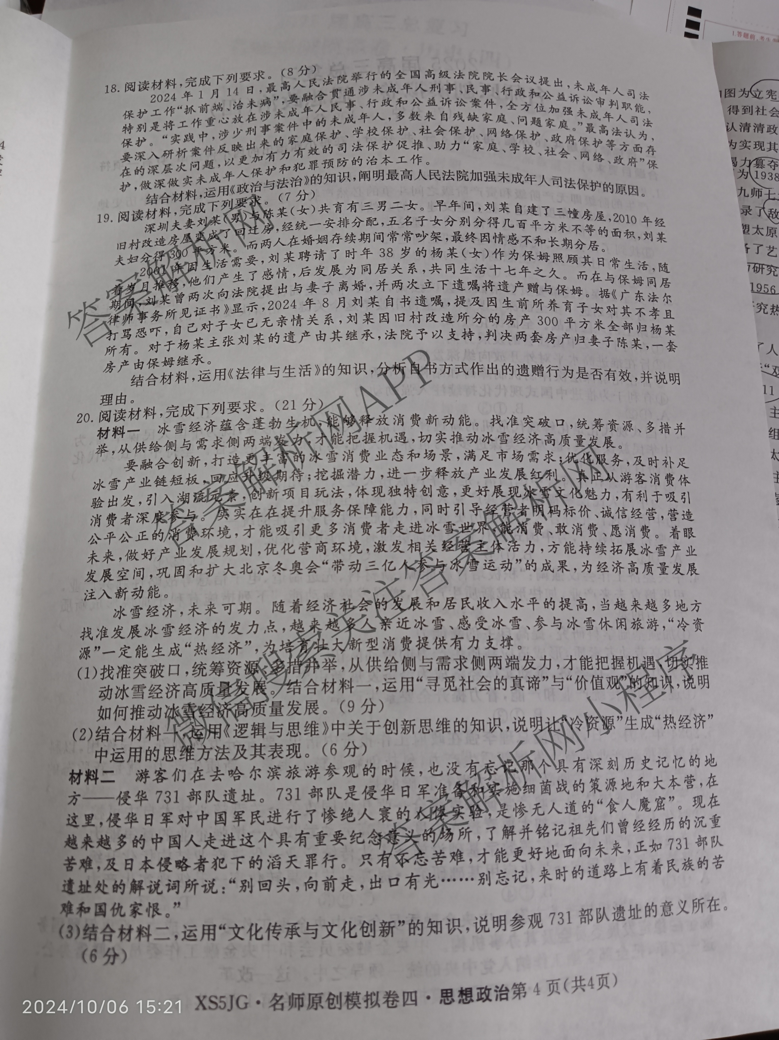 - [高三]2025届[总复习名师原创模拟](四)4政治(XS5JG)答案