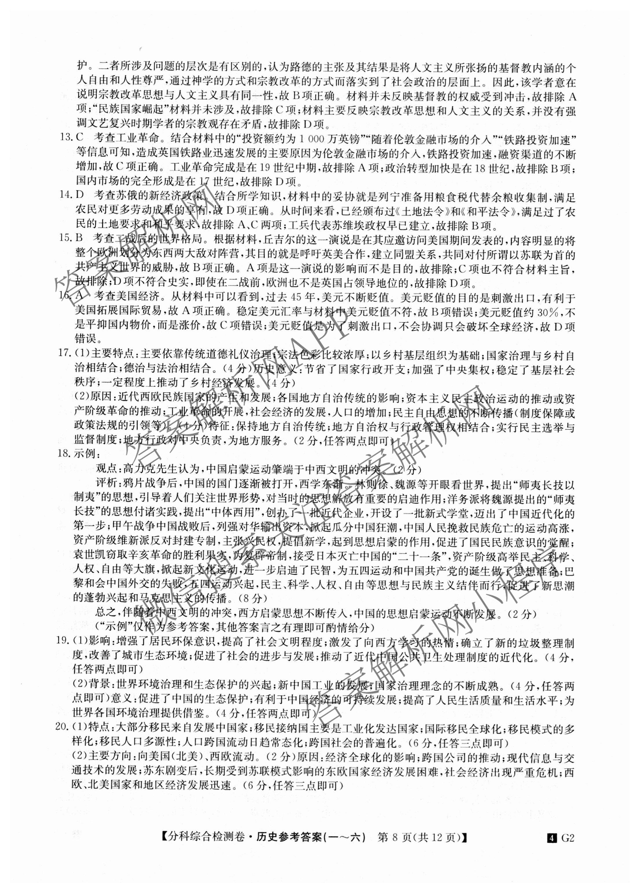- 2024分科综合检测卷 历史(3 G2)(四)4答案