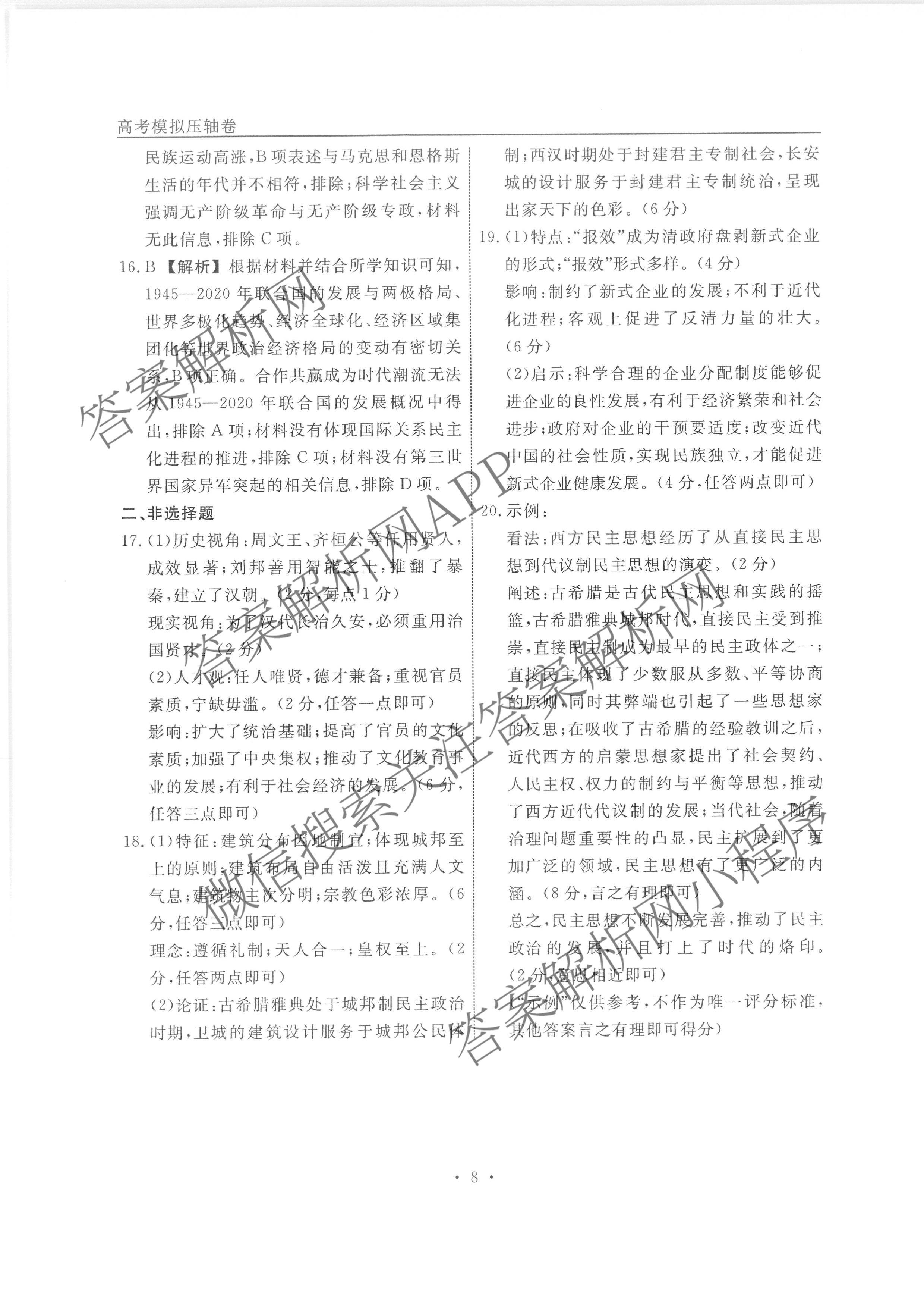 衡水名师卷·高考模拟压轴卷 2024年普通高中学业水平选择性考试模拟试题(三)3历史(同心圆)答案,目前分科卷答案网已经汇总了衡水名师卷·高考模拟压轴卷 2024年普通高中学业水平选择性考试模拟试题(三)3历史(同心圆)答案的各科答案和试卷,获取更多衡水名师卷答案解析,请在关注本站。
