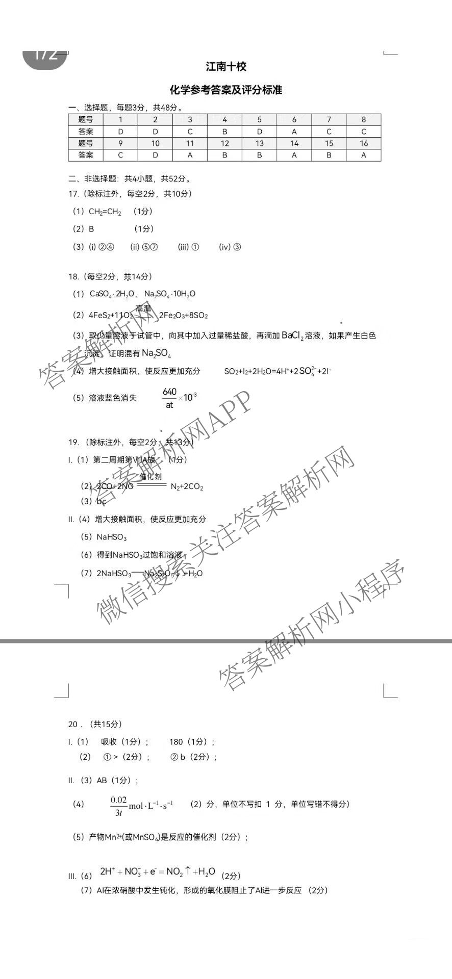 2024年"江南十校"高一年级5月阶段联考化学答案,目前分科卷答案网已经汇总了2024年"江南十校"高一年级5月阶段联考化学答案的各科答案和试卷,获取更多江南十校答案解析,请在关注本站。