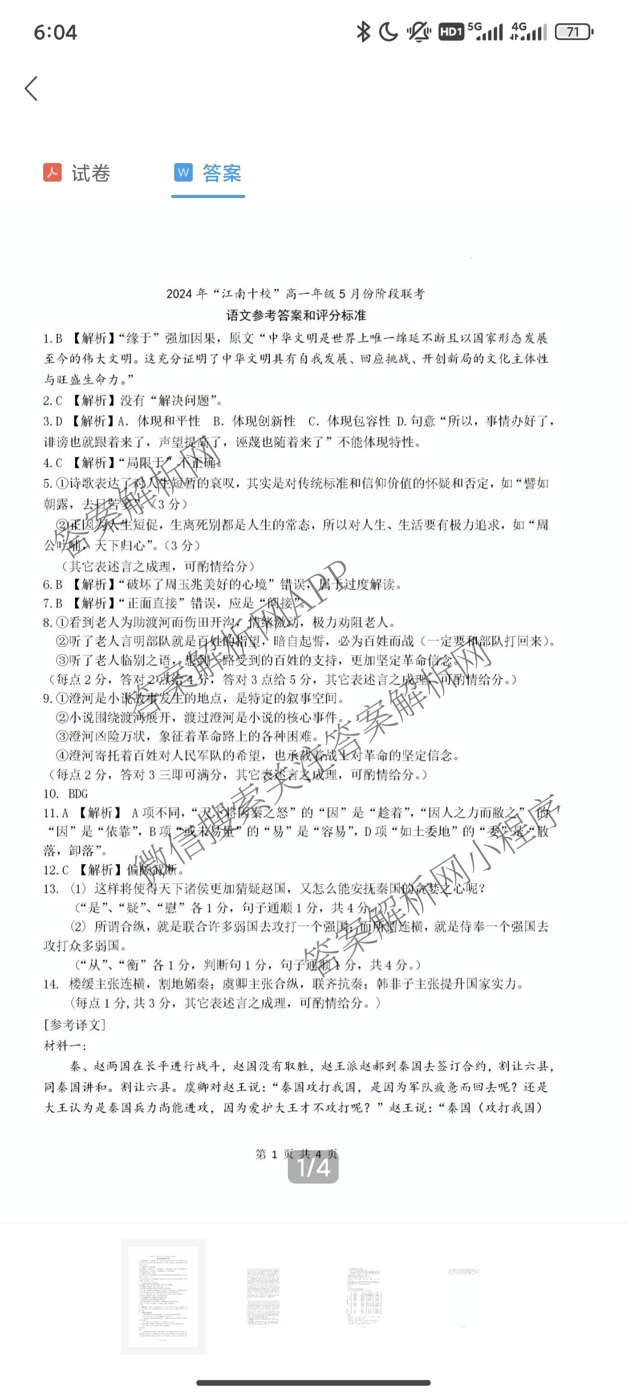 2024年"江南十校"高一年级5月阶段联考语文答案,目前分科卷答案网已经汇总了2024年"江南十校"高一年级5月阶段联考语文答案的各科答案和试卷,获取更多江南十校答案解析,请在关注本站。
