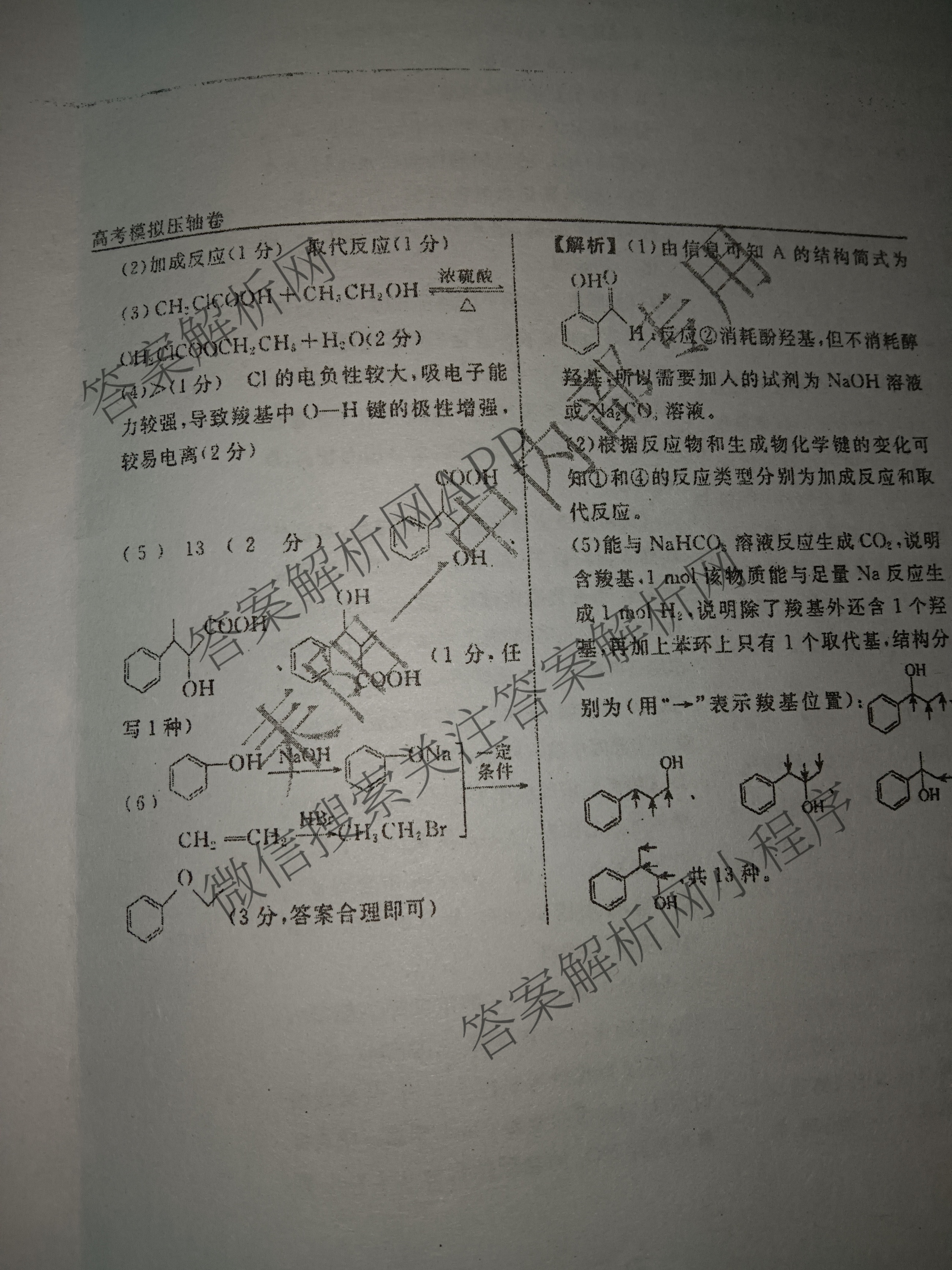衡水名师卷·2024年普通高中学业水平选择性考试模拟 高考模拟压轴卷(二)2化学(双菱形)答案,目前分科卷答案网已经汇总了衡水名师卷·2024年普通高中学业水平选择性考试模拟 高考模拟压轴卷(二)2化学(双菱形)答案的各科答案和试卷,获取更多衡水名师卷答案解析,请在关注本站。