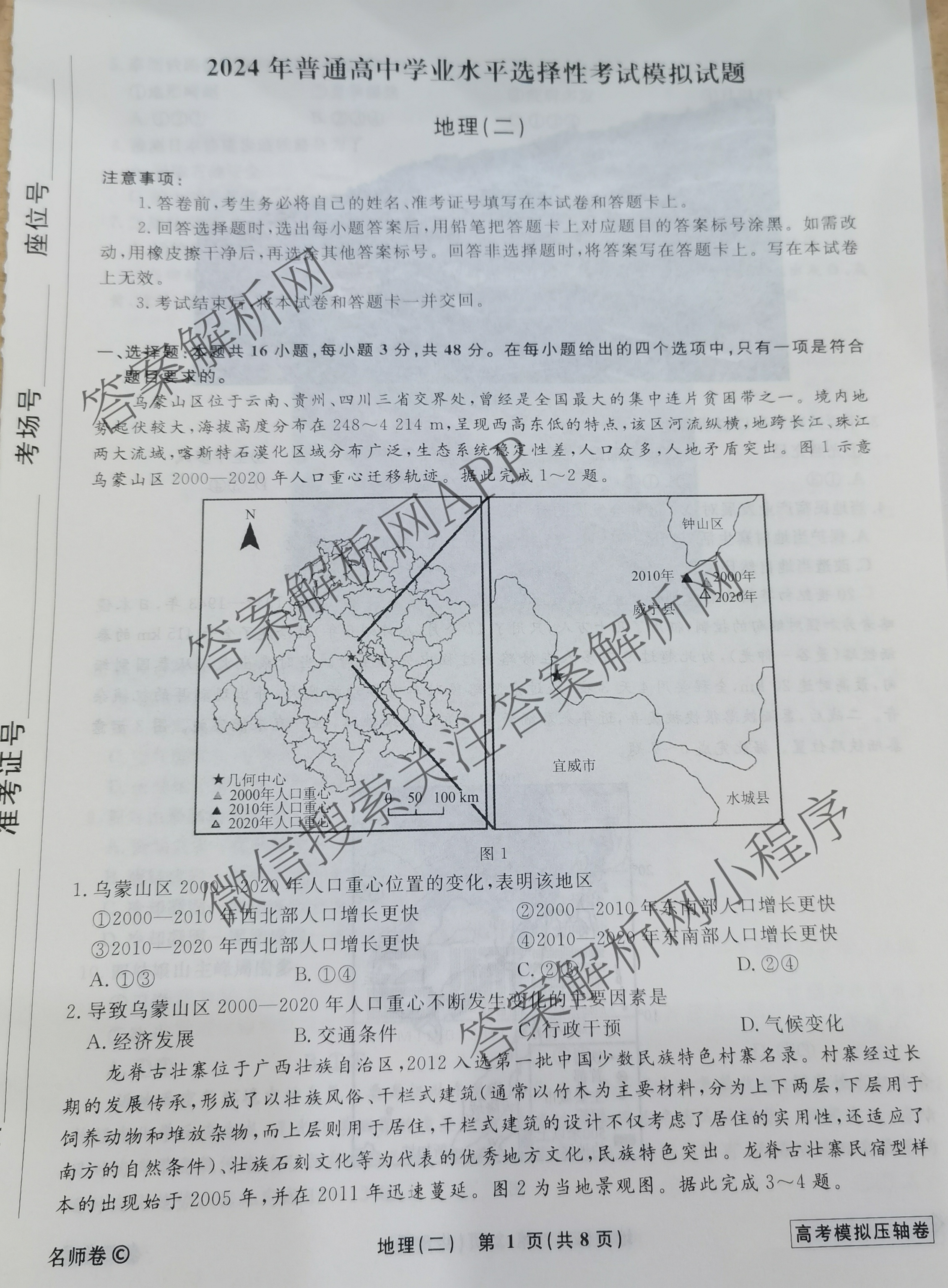 - (衡水名师卷)2024年普通高中学业水平选择性考试模拟 高考模拟压轴卷(二)2地理(实心圆)答案