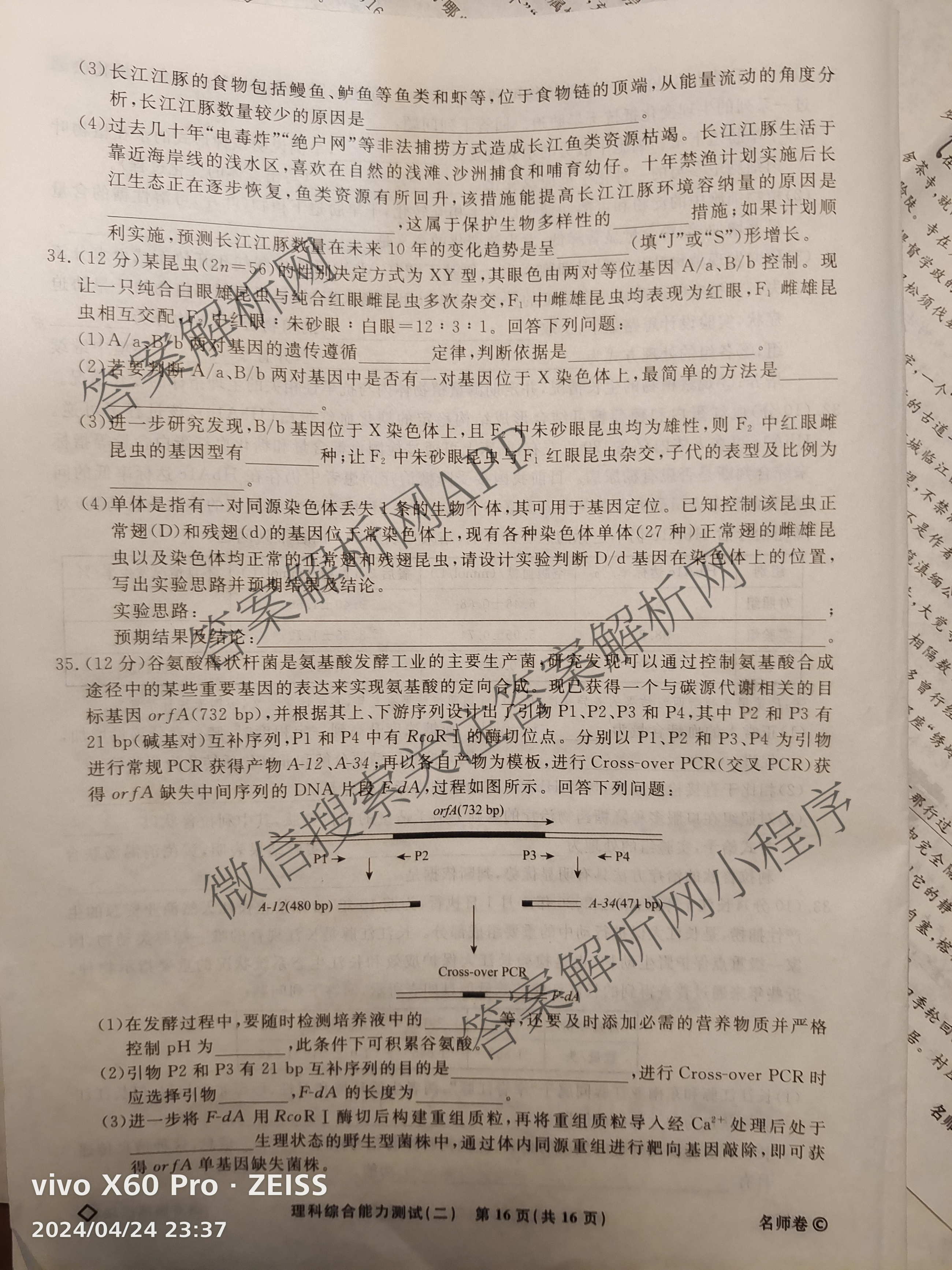 衡水名师卷·2023-2024高考模拟压轴卷 理综(◇)(二)2试题,目前分科卷答案网已经汇总了衡水名师卷·2023-2024高考模拟压轴卷 理综(◇)(二)2试题的各科答案和试卷,获取更多衡水名师卷答案解析,请在关注本站。