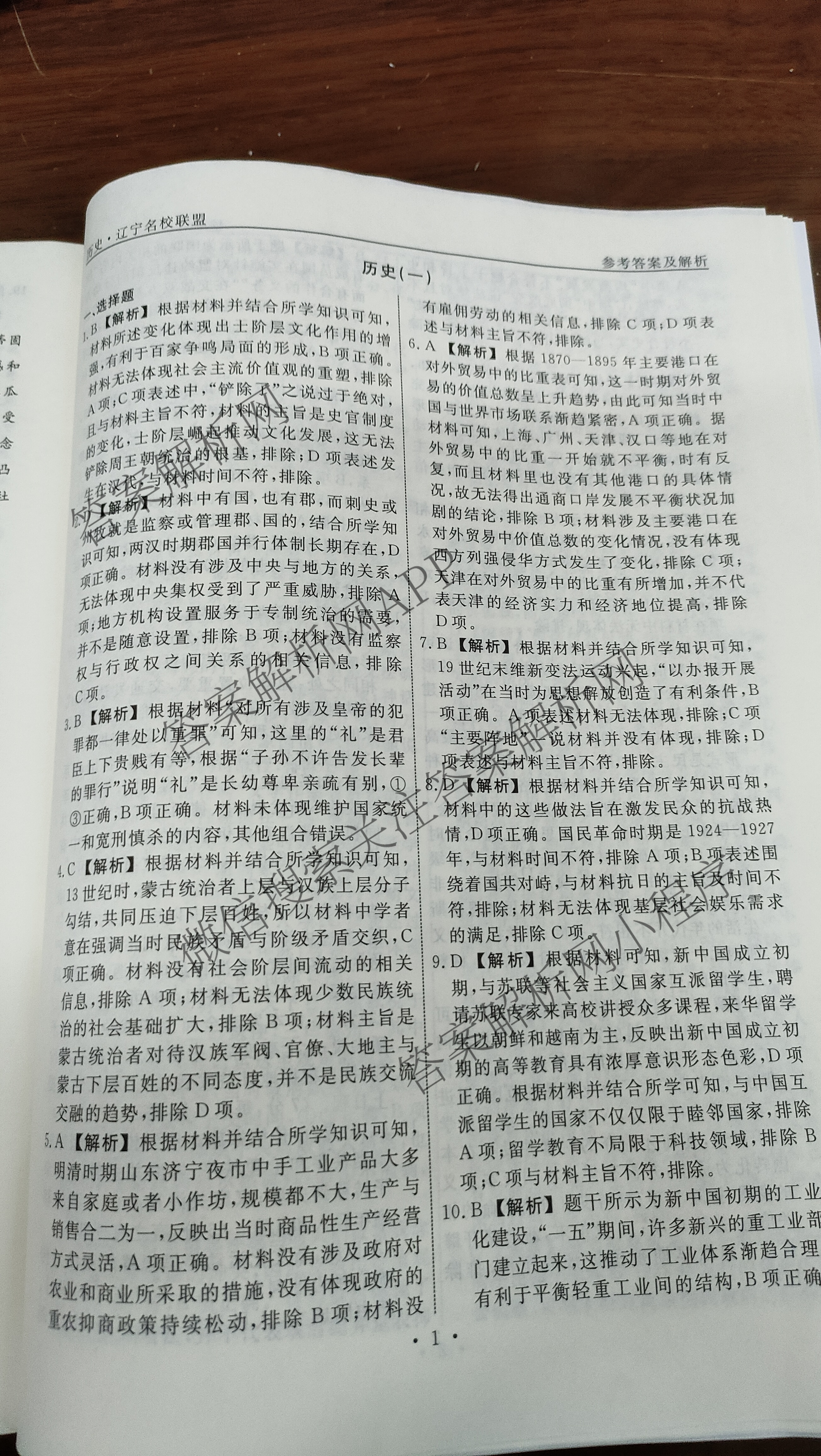 - 辽宁省名校联盟2024年高考模拟卷(押题卷)(一)1历史答案