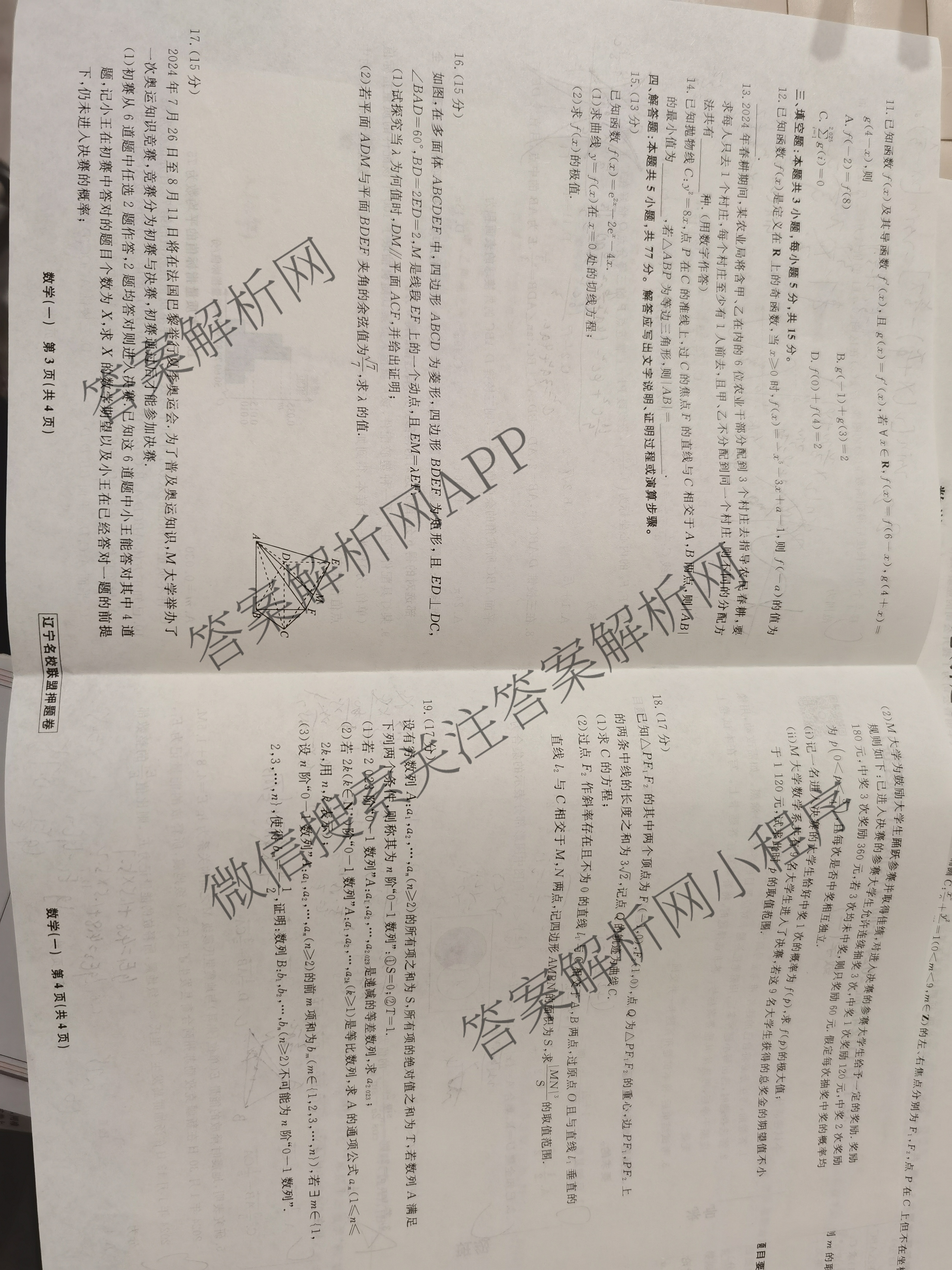 辽宁省名校联盟2024年高考模拟卷(押题卷)(一)1数学试题,目前分科卷答案网已经汇总了辽宁省名校联盟2024年高考模拟卷(押题卷)(一)1数学试题的各科答案和试卷,获取更多衡水名师卷答案解析,请在关注本站。