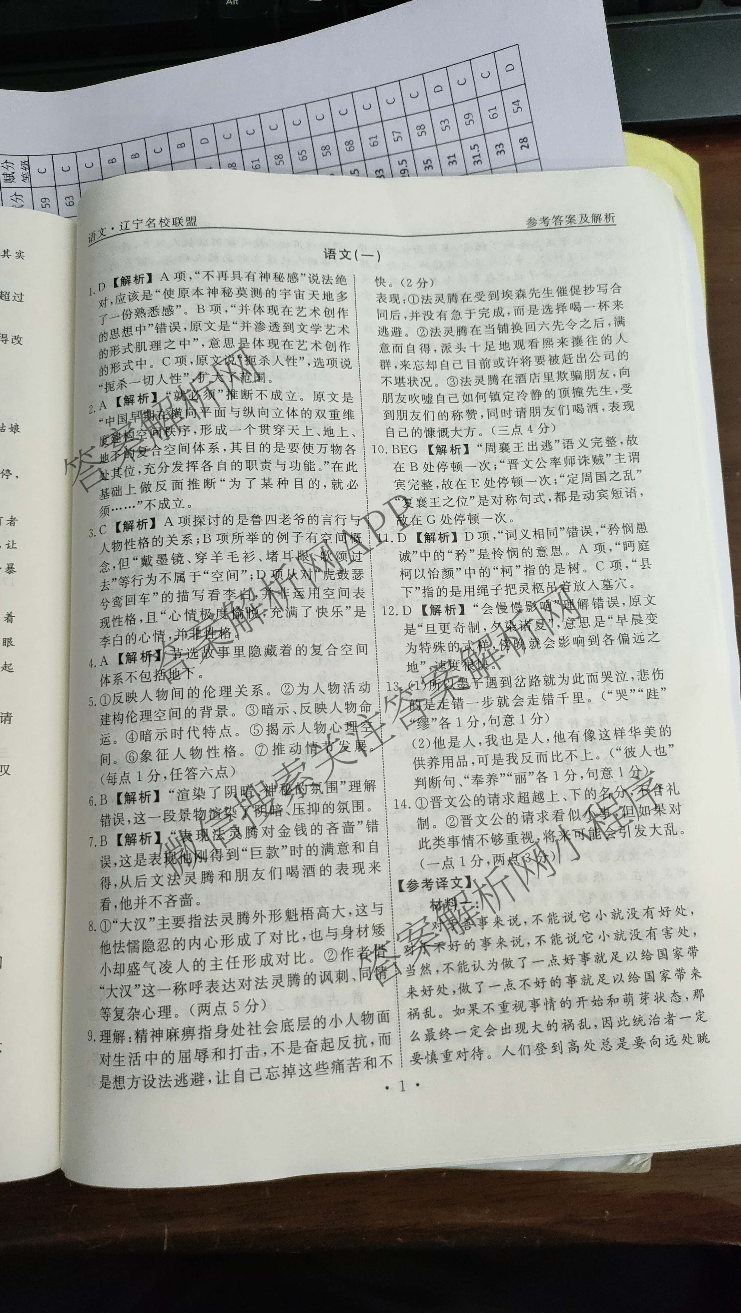 辽宁省名校联盟2024年高考模拟卷(押题卷)(一)1语文答案,目前分科卷答案网已经汇总了辽宁省名校联盟2024年高考模拟卷(押题卷)(一)1语文答案的各科答案和试卷,获取更多衡水名师卷答案解析,请在关注本站。