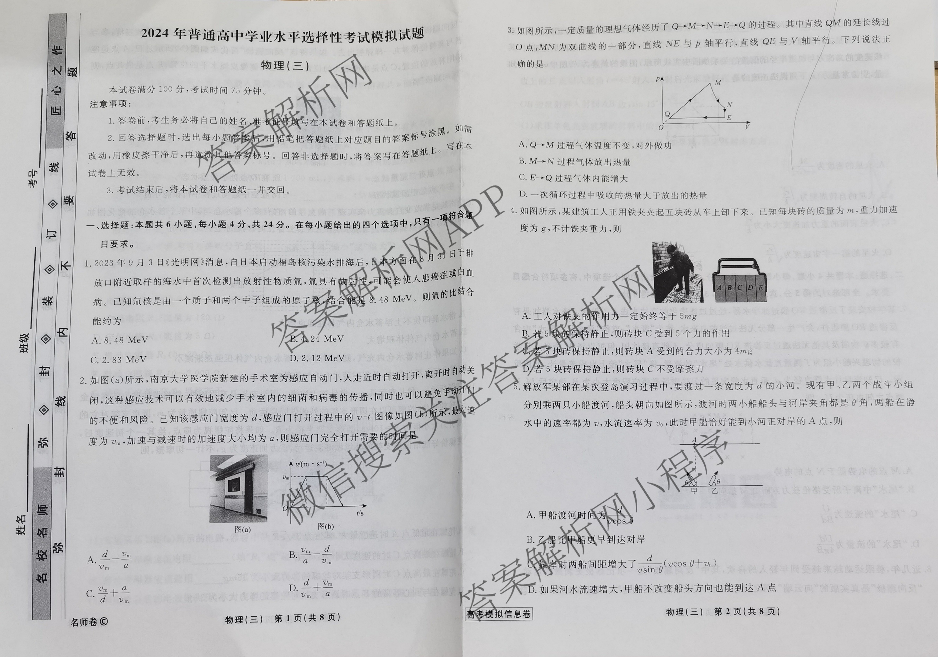 衡水名师卷·高考模拟信息卷 2024年普通高中学业水平选择性考试模拟 物理(双空心菱形)(三)3试题,目前分科卷答案网已经汇总了衡水名师卷·高考模拟信息卷 2024年普通高中学业水平选择性考试模拟 物理(双空心菱形)(三)3试题的各科答案和试卷,获取更多衡水名师卷答案解析,请在关注本站。