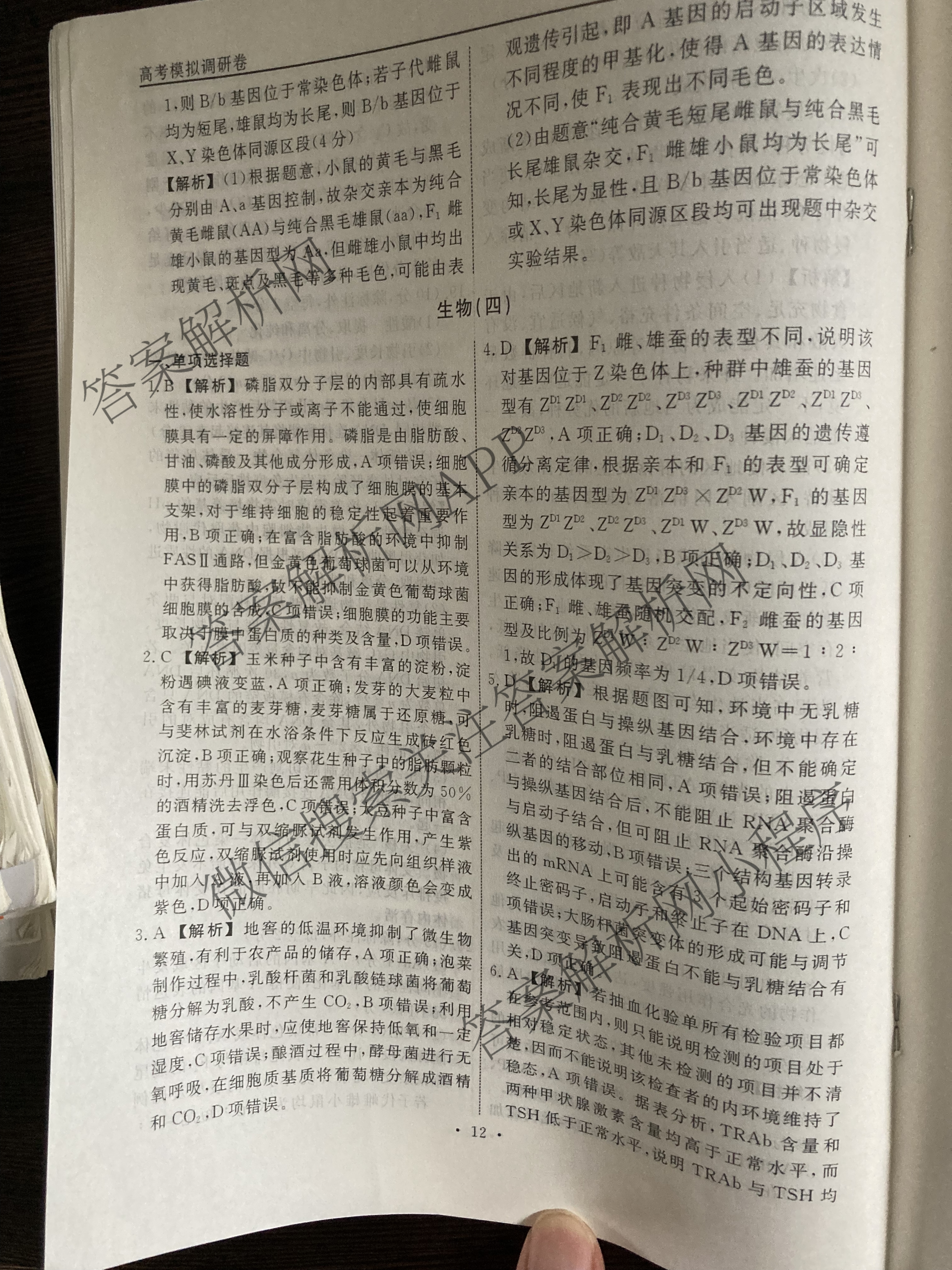 - [高三]衡水名师卷高考模拟调研卷 2024年普通高中学业水平选择性考试模拟试题 生物(双菱形)(三)3答案