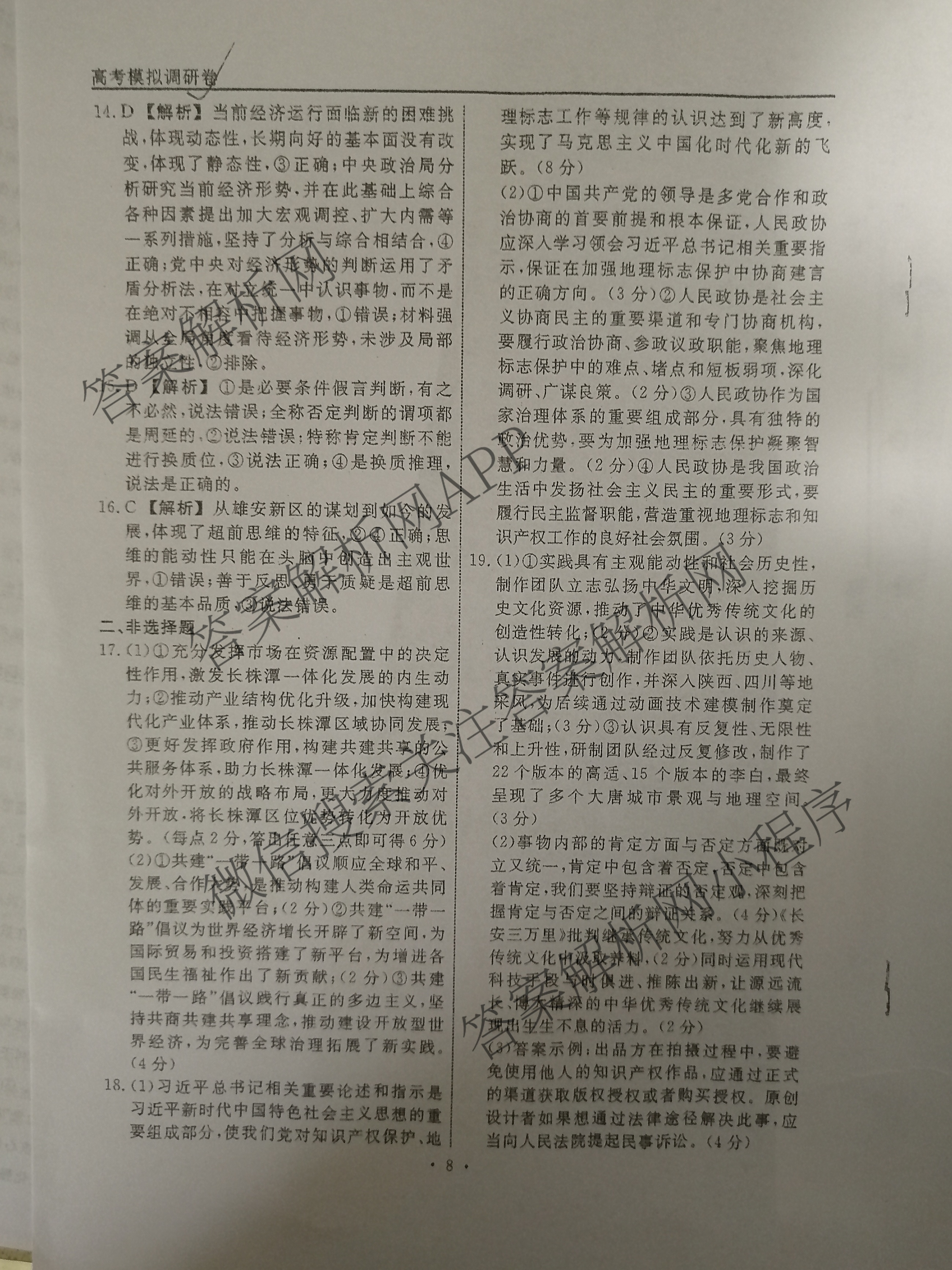 - 高三[衡水名师卷]高考模拟调研卷 2024年普通高中学业水平选择性考试模拟试题 政治(双菱形)(四)4答案