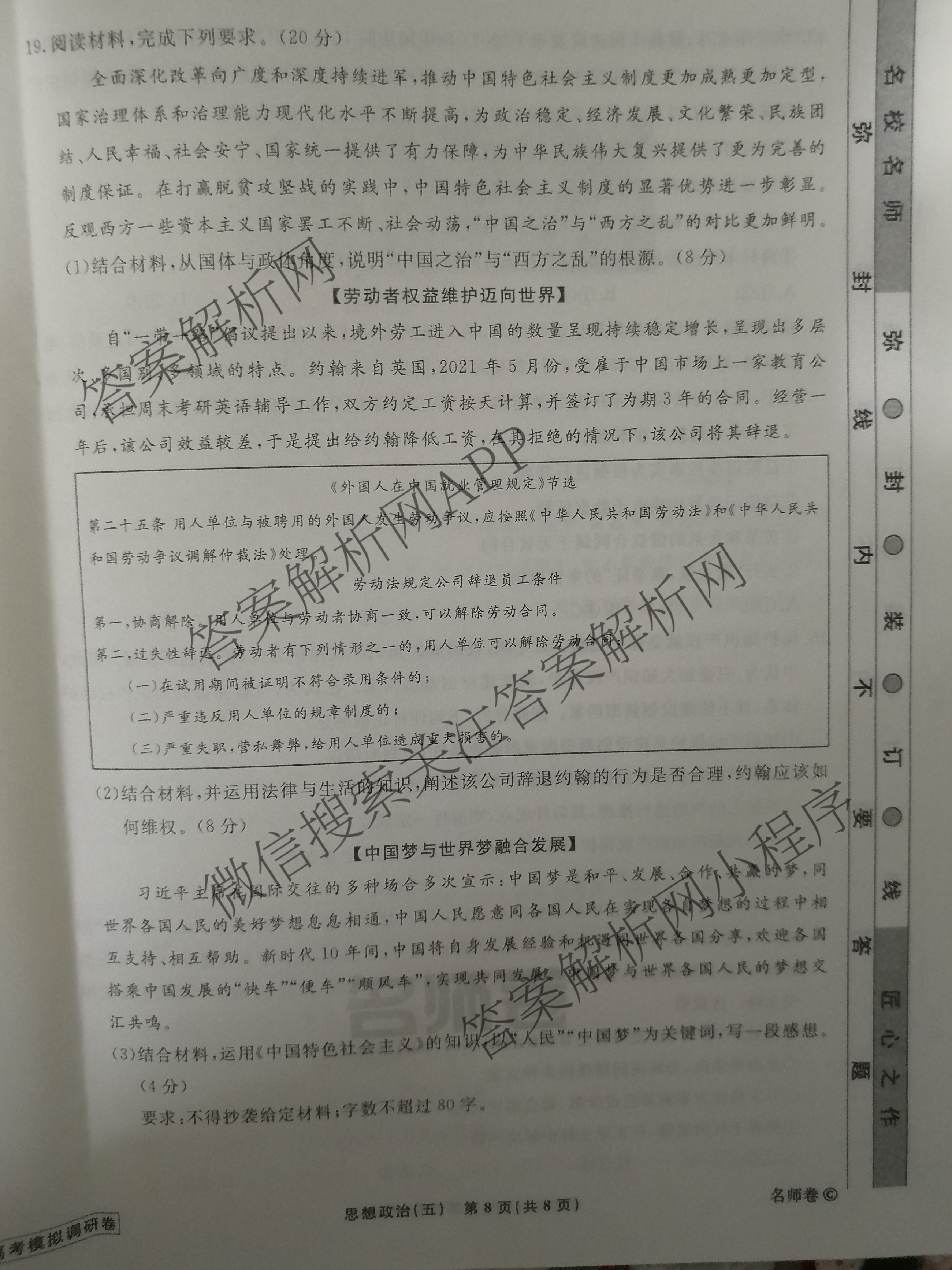 [高三][衡水名师卷]·高考模拟调研卷2024年普通高中学业水平选择性考试模拟试题 政治(实心○)(五)5试题