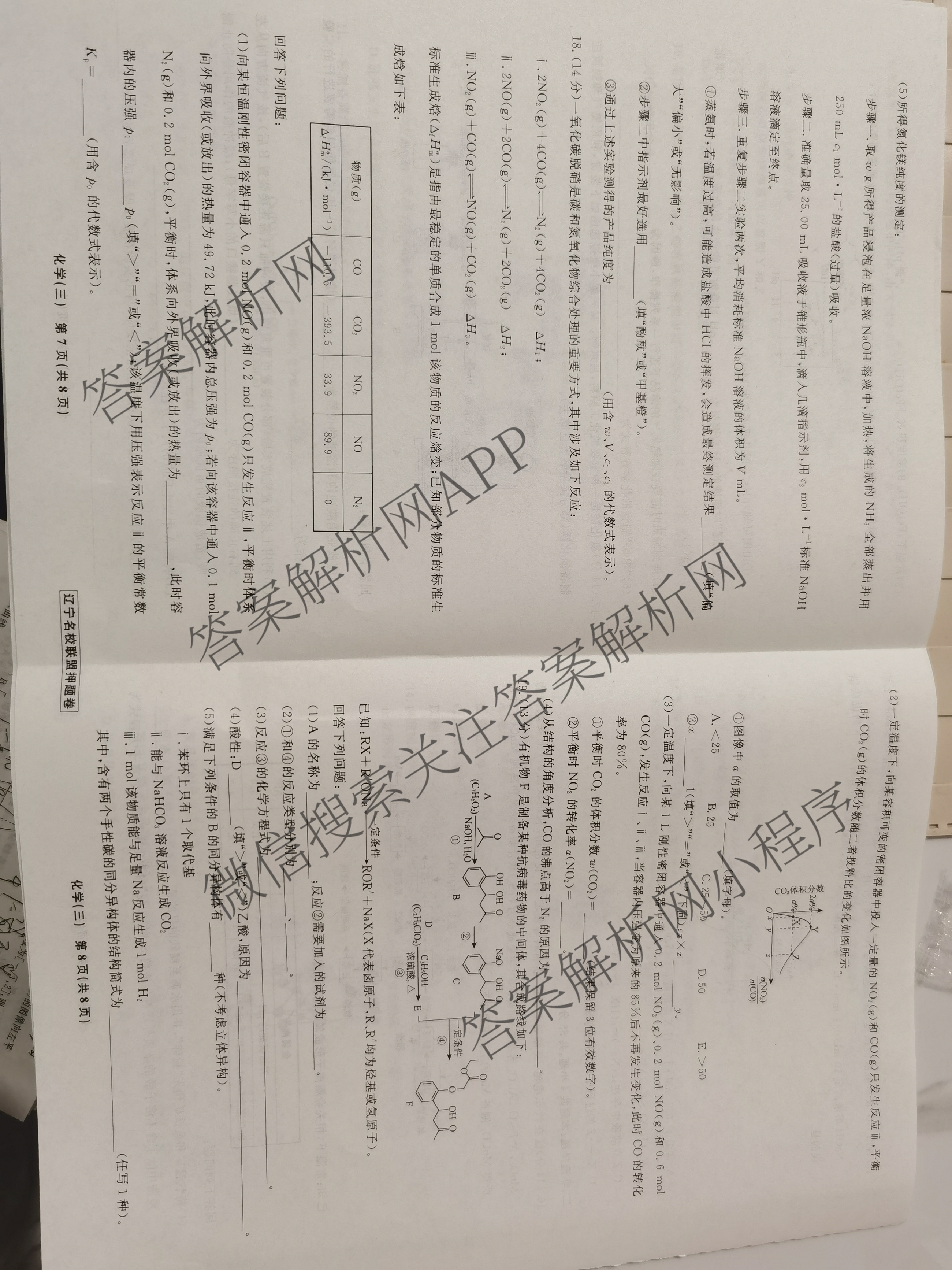 辽宁省名校联盟2024年高考模拟卷(押题卷)(三)3化学试题,目前分科卷答案网已经汇总了辽宁省名校联盟2024年高考模拟卷(押题卷)(三)3化学试题的各科答案和试卷,获取更多衡水名师卷答案解析,请在关注本站。
