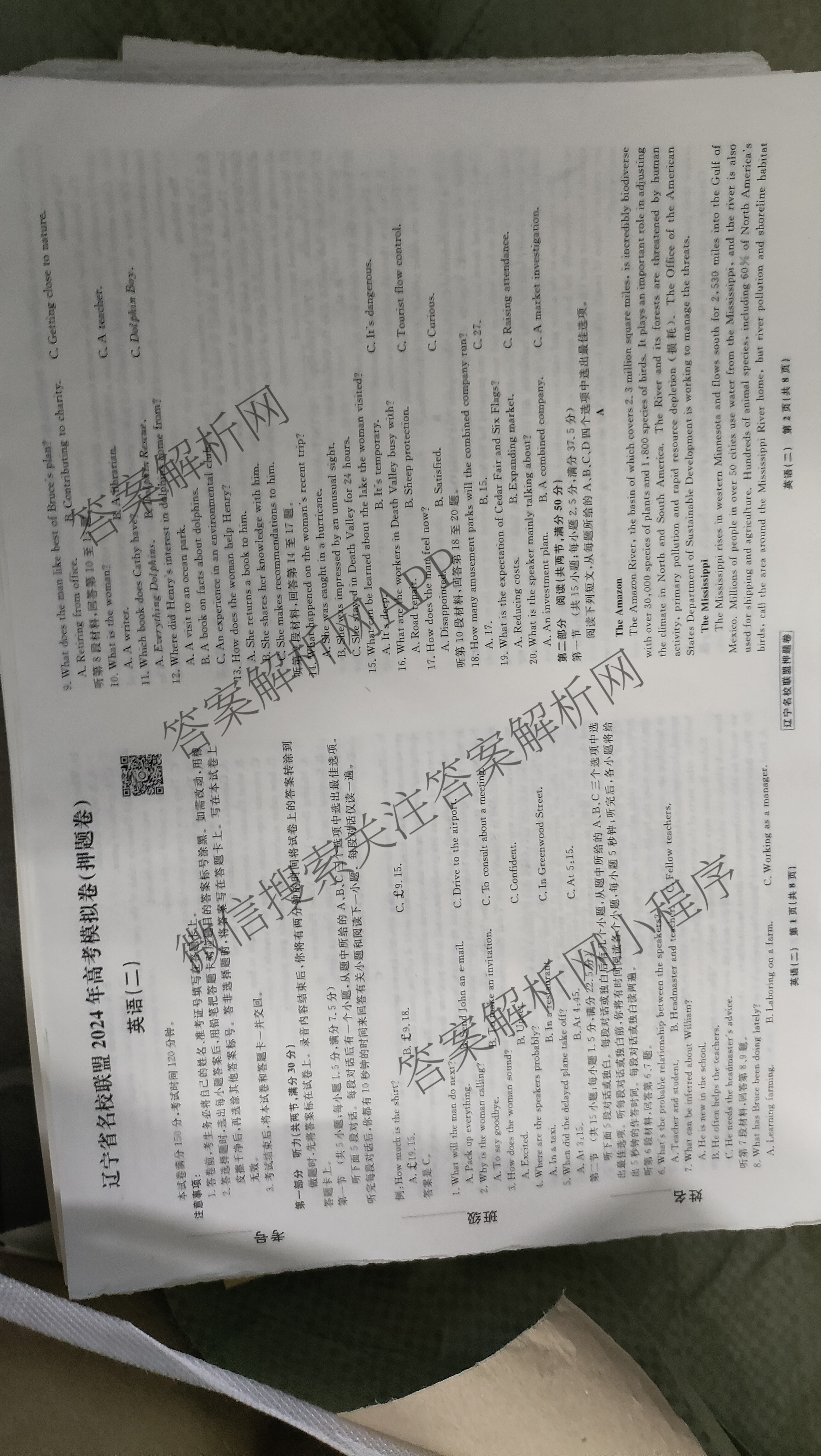 辽宁省名校联盟2024年高考模拟卷(押题卷)(二)2英语试题,目前分科卷答案网已经汇总了辽宁省名校联盟2024年高考模拟卷(押题卷)(二)2英语试题的各科答案和试卷,获取更多衡水名师卷答案解析,请在关注本站。