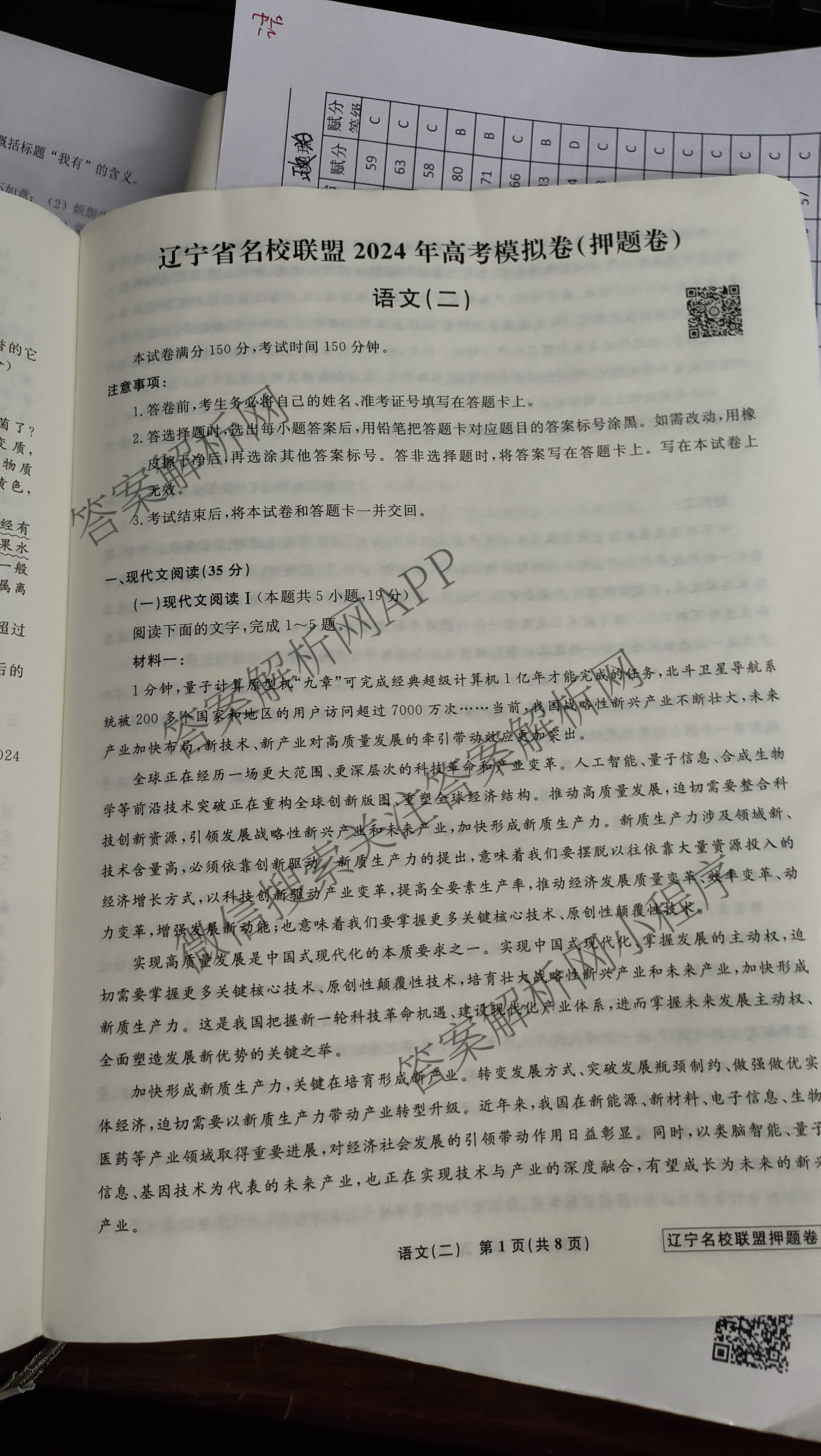 辽宁省名校联盟2024年高考模拟卷(押题卷)(二)2语文试题,目前分科卷答案网已经汇总了辽宁省名校联盟2024年高考模拟卷(押题卷)(二)2语文试题的各科答案和试卷,获取更多衡水名师卷答案解析,请在关注本站。