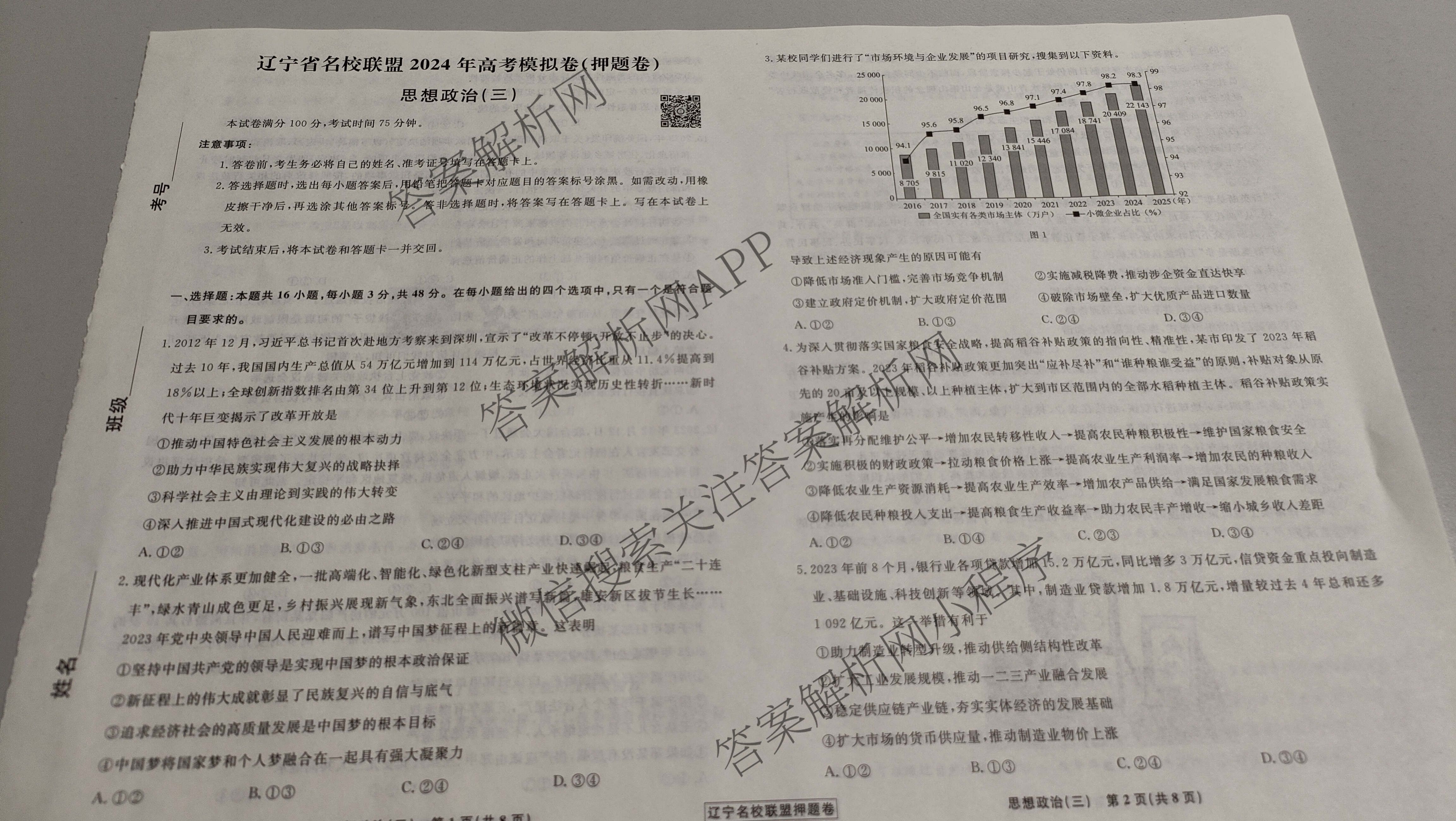 辽宁省名校联盟2024年高考模拟卷(押题卷)(三)3政治试题,目前分科卷答案网已经汇总了辽宁省名校联盟2024年高考模拟卷(押题卷)(三)3政治试题的各科答案和试卷,获取更多衡水名师卷答案解析,请在关注本站。