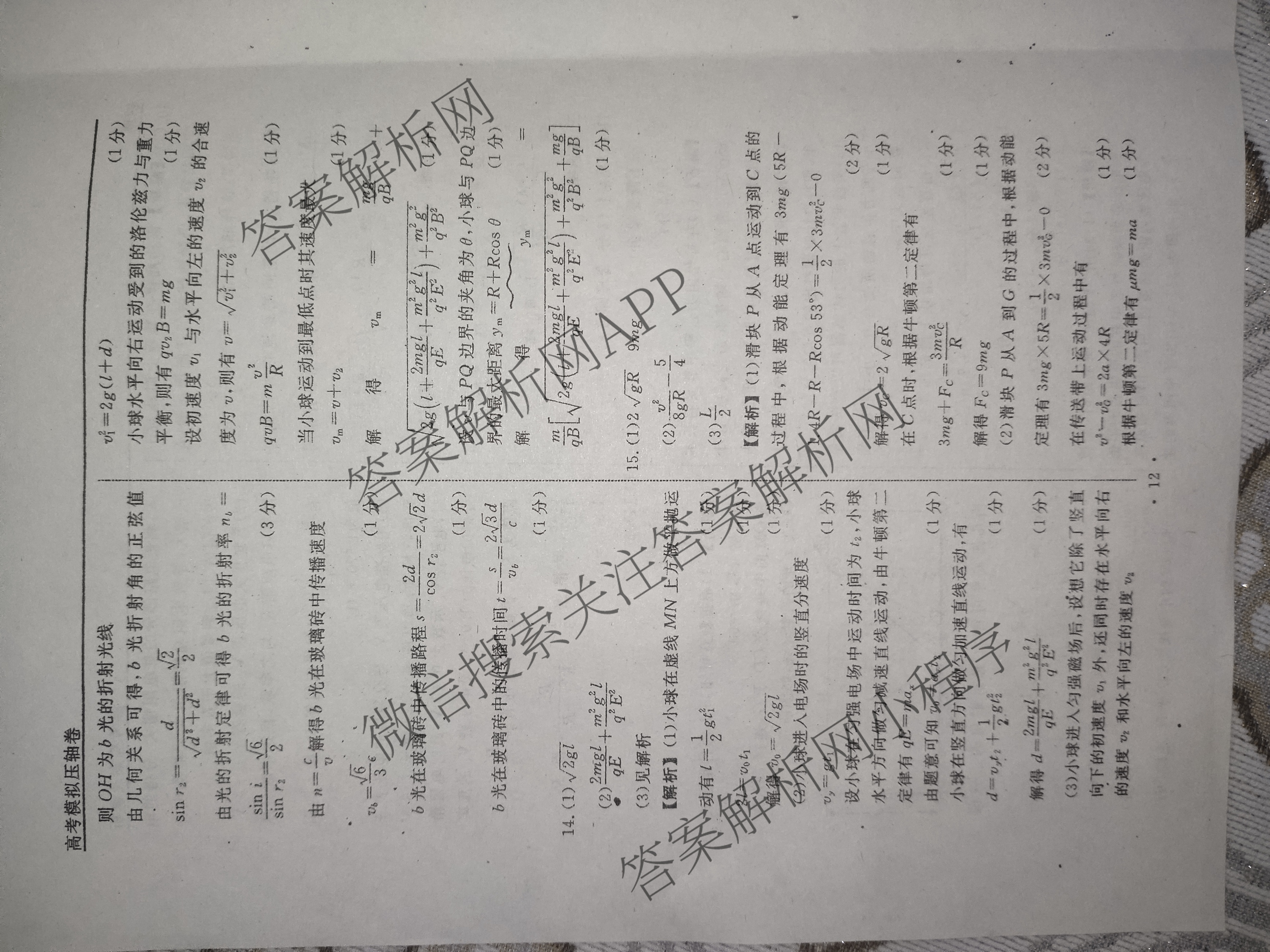 衡水名师卷2024年普通高中学业水平选择性考试模拟 高考模拟压轴卷(三)3物理(双菱形)答案