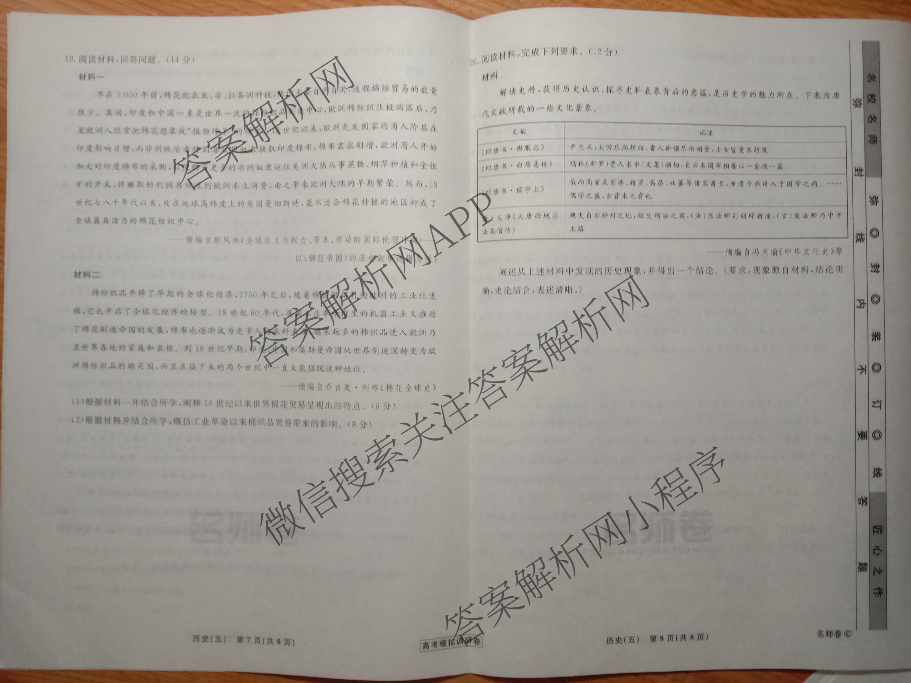 衡水名师卷·高考模拟调研卷 2024年普通高中学业水平选择性考试模拟 历史(双圆形)(五)5试题,目前分科卷答案网已经汇总了衡水名师卷·高考模拟调研卷 2024年普通高中学业水平选择性考试模拟 历史(双圆形)(五)5试题的各科答案和试卷,获取更多衡水名师卷答案解析,请在关注本站。