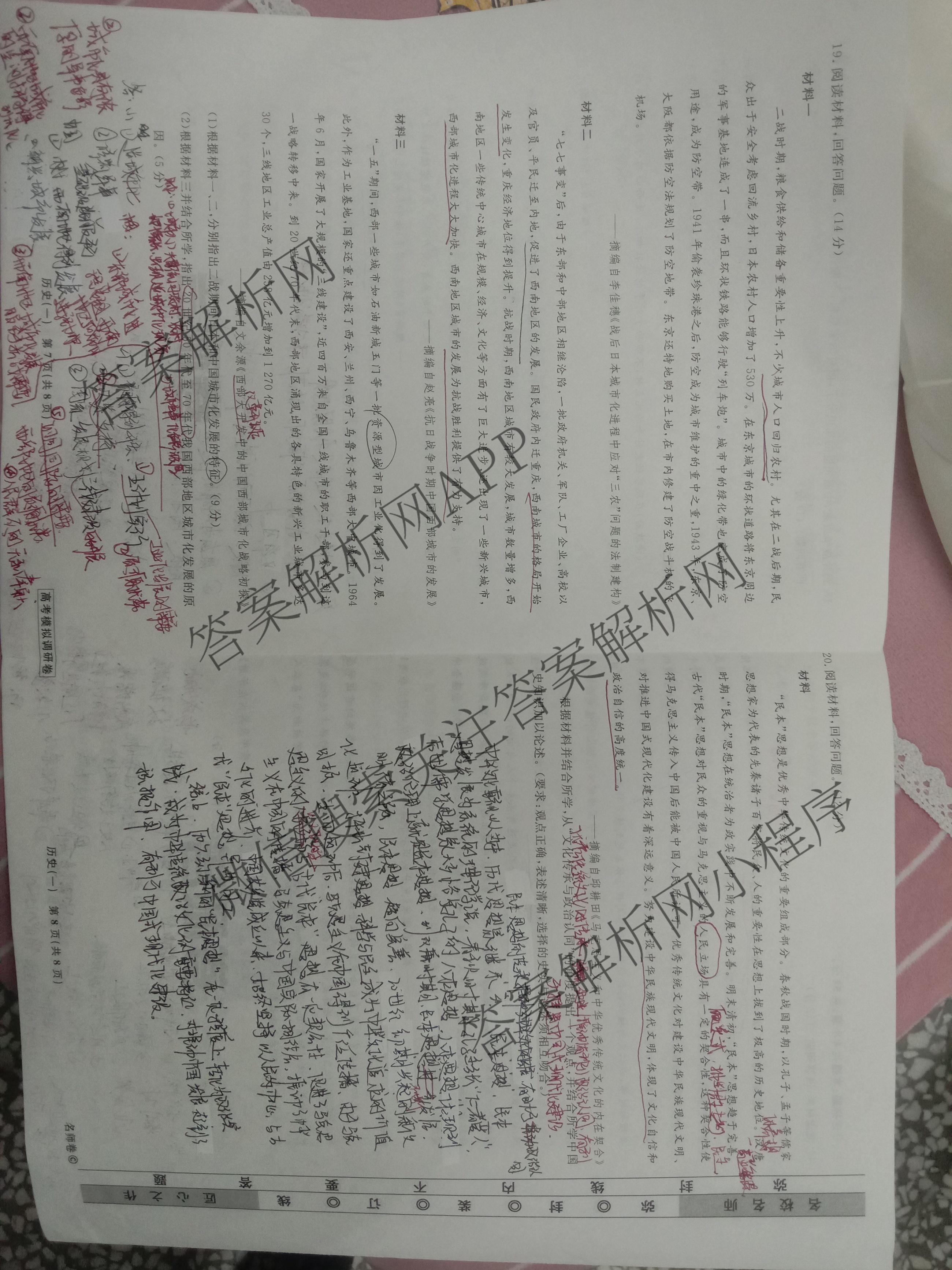 - [衡水名师卷]高考模拟调研卷 2024年普通高等学校招生全国统一考试模拟试题 文综(实心◇)(一)1答案