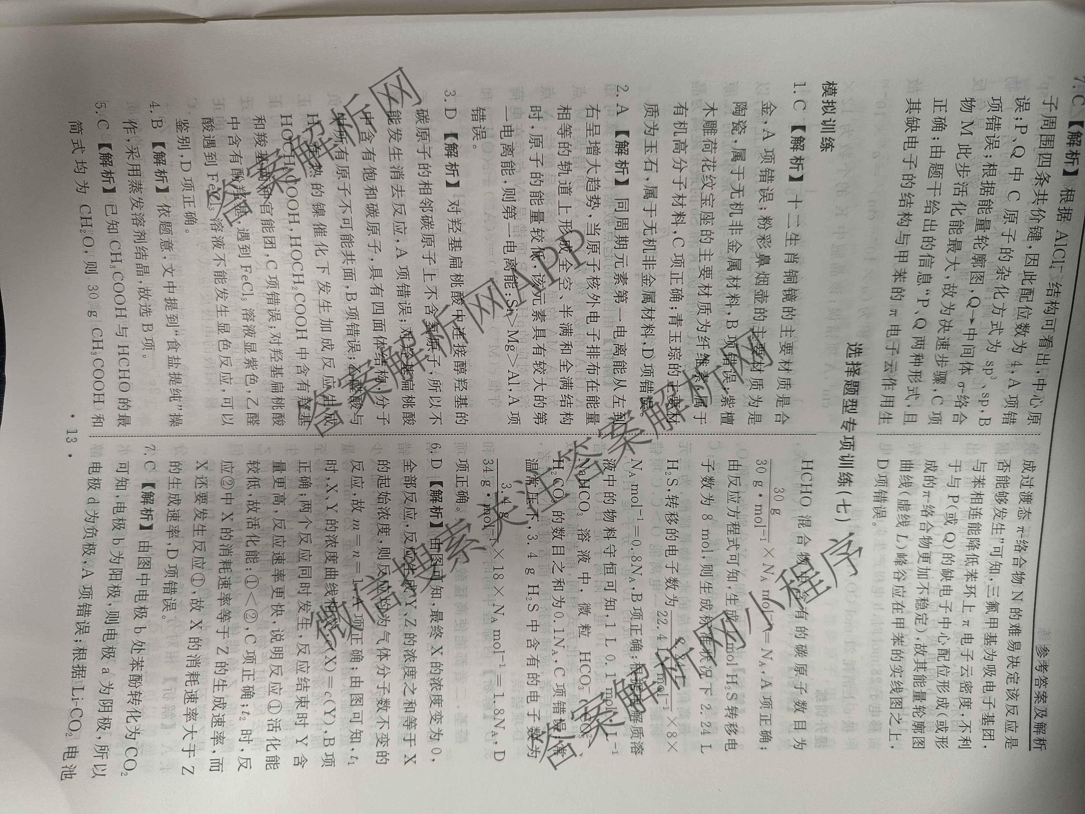 衡水名师卷2024年普通高等学校招生全国统一考试 选择题型专项训练 化学(六)6答案