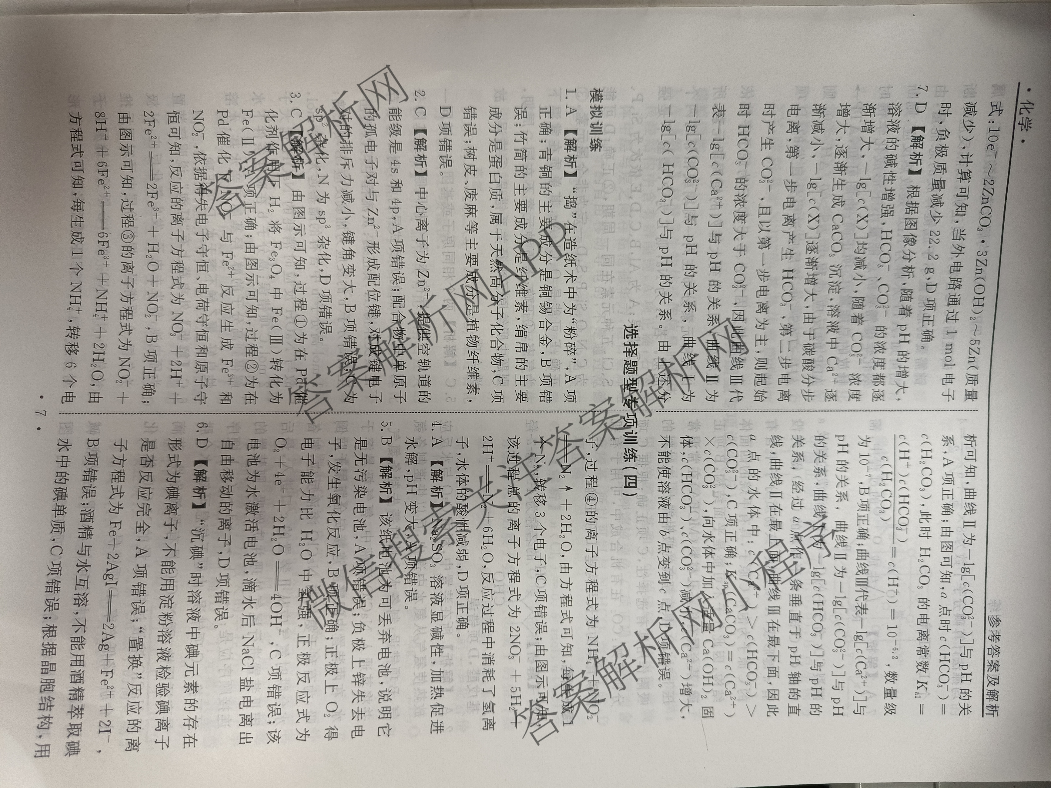 衡水名师卷2024年普通高等学校招生全国统一考试 选择题型专项训练 化学(三)3答案