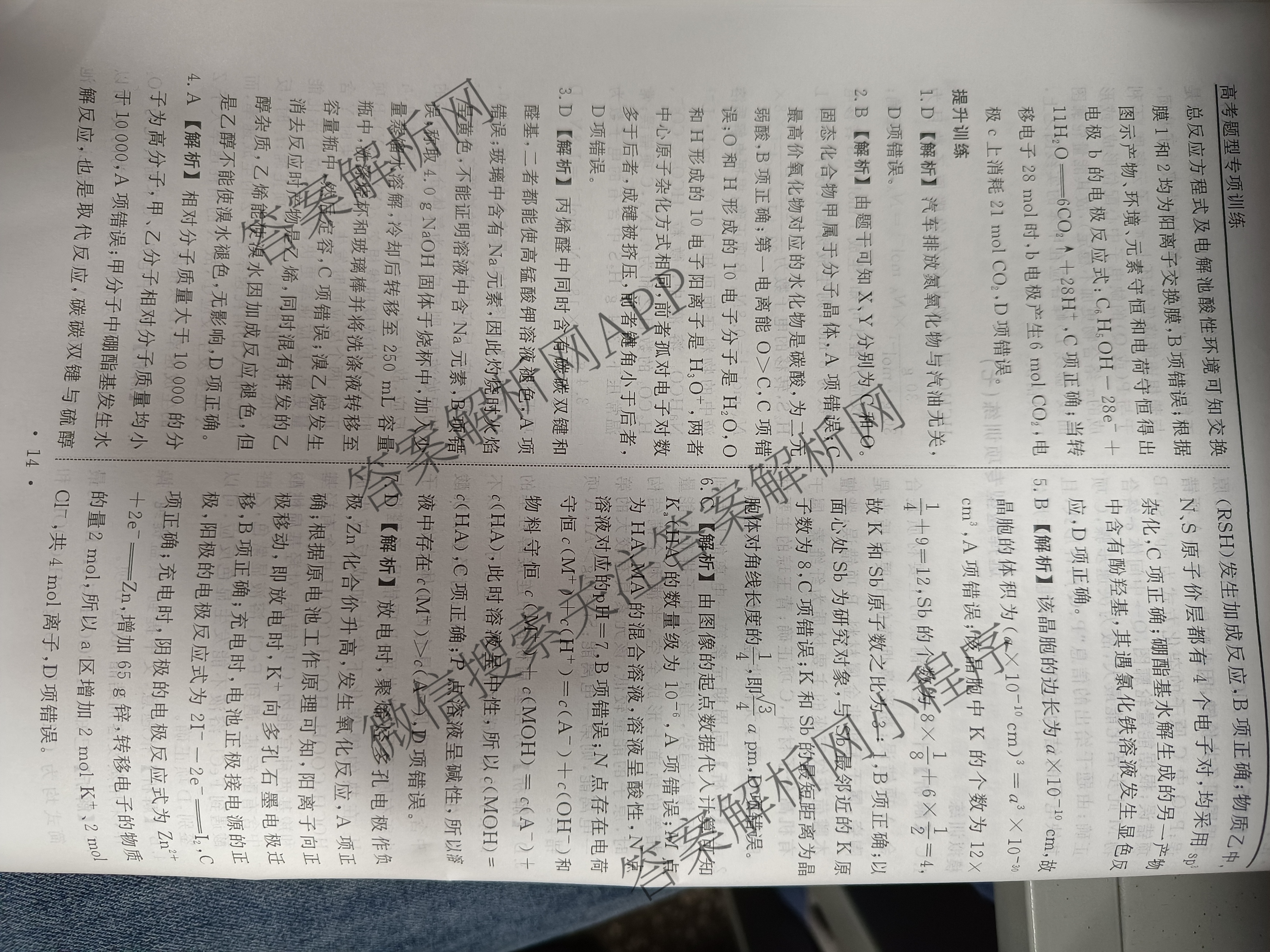 衡水名师卷2024年普通高等学校招生全国统一考试 选择题型专项训练 化学(七)7答案