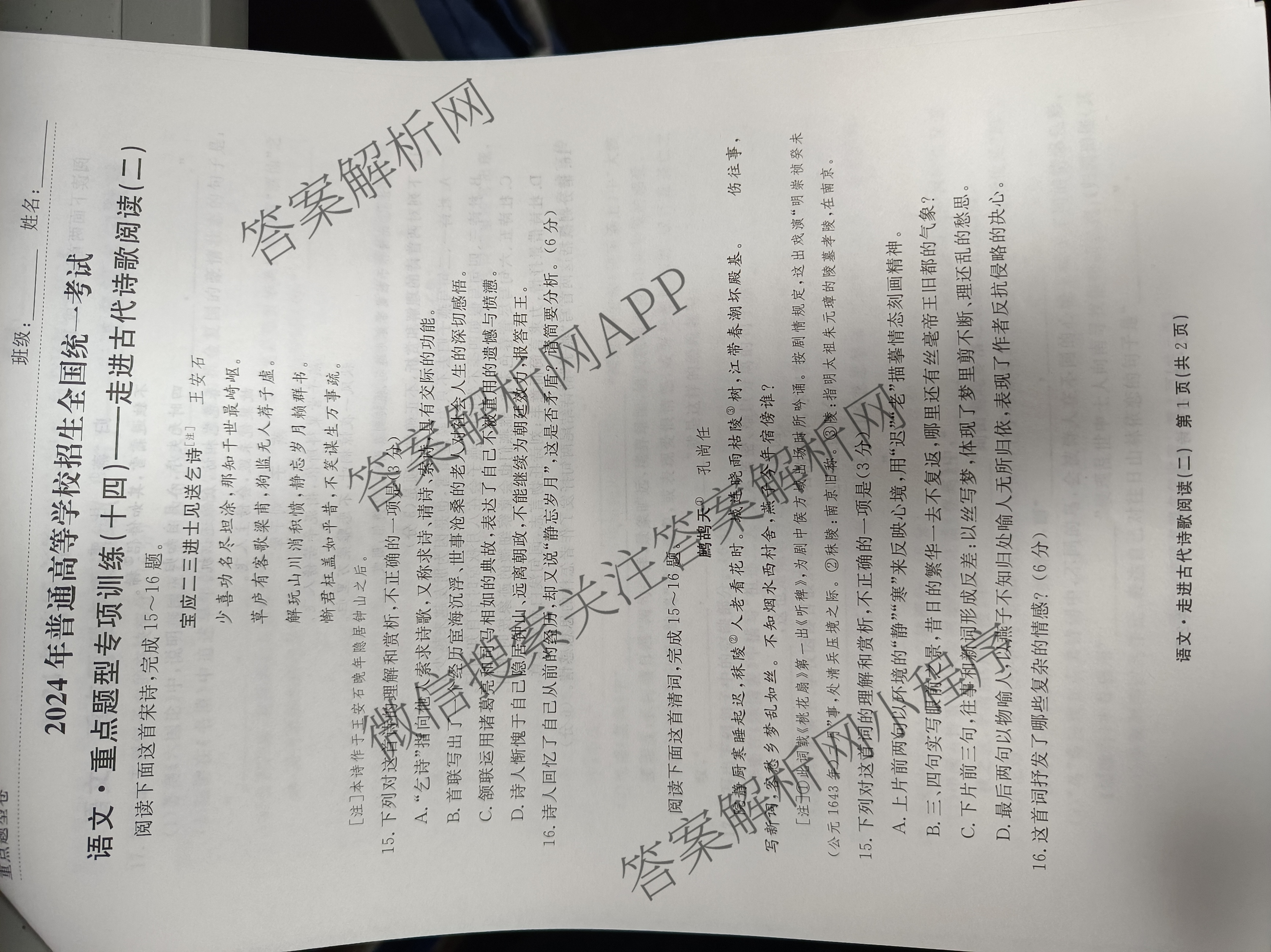 衡水名师卷·2024年普通高等学校招生全国统一考试 重点题型专项训练 语文(十四)14试题,目前分科卷答案网已经汇总了衡水名师卷·2024年普通高等学校招生全国统一考试 重点题型专项训练 语文(十四)14试题的各科答案和试卷,获取更多衡水名师卷答案解析,请在关注本站。