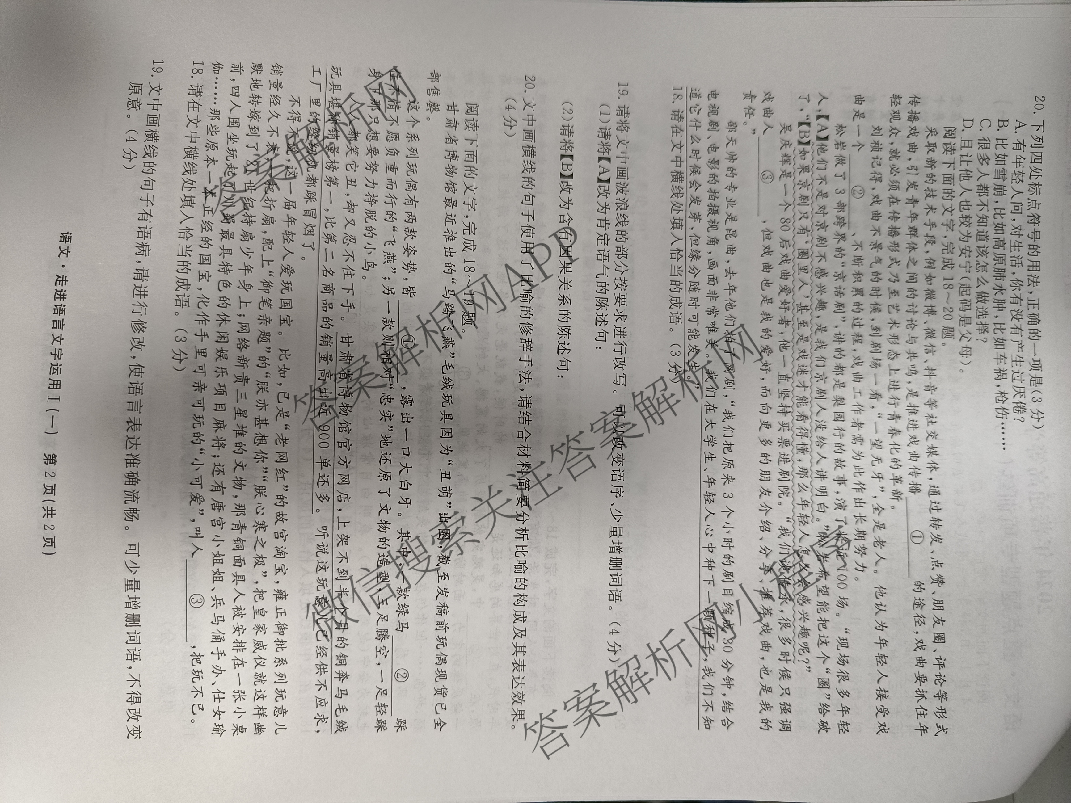 衡水名师卷2024年普通高等学校招生全国统一考试 重点题型专项训练 语文(十六)16试题
