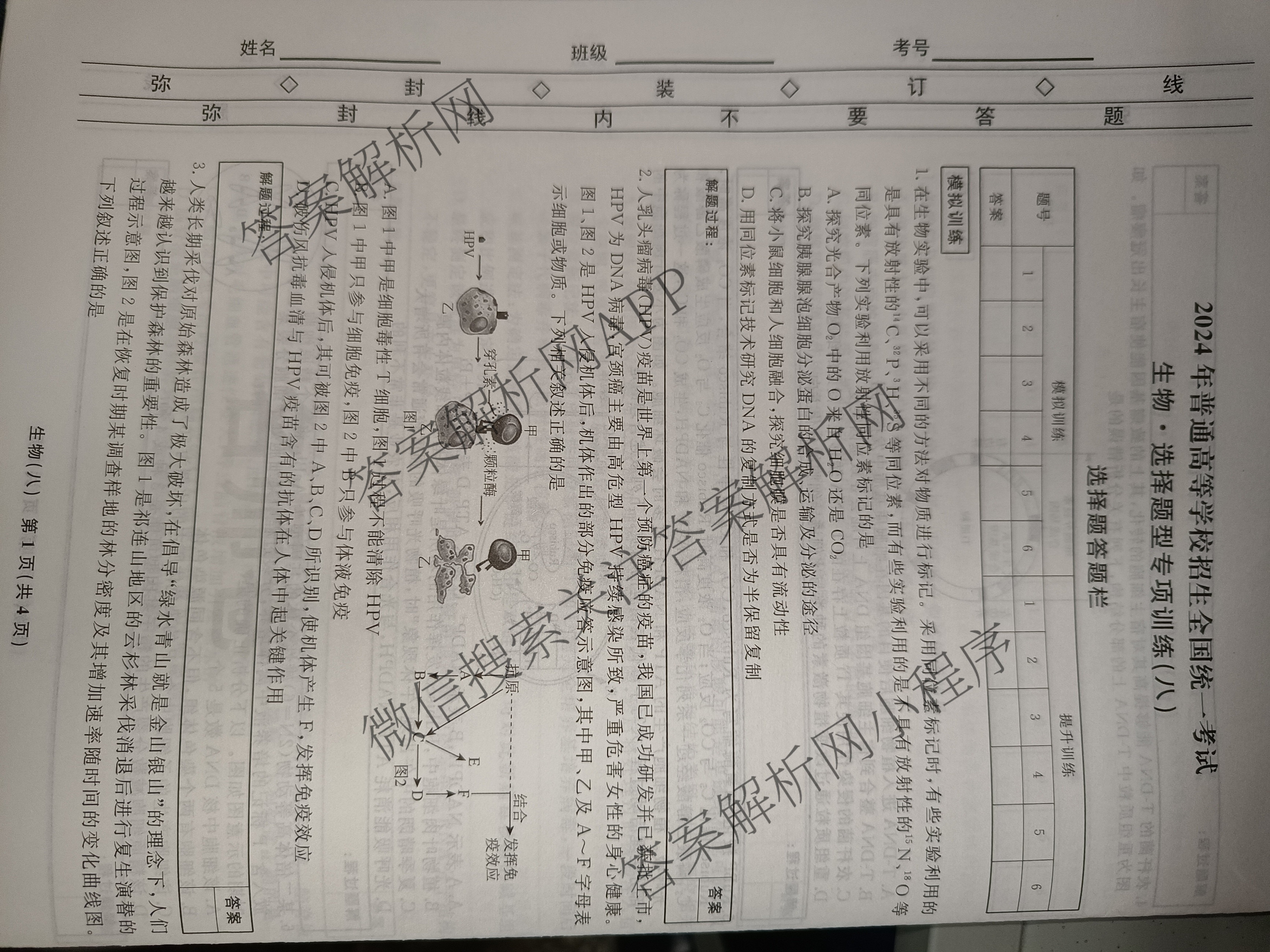 衡水名师卷2024年普通高等学校招生全国统一考试 选择题型专项训练 生物(八)8试题