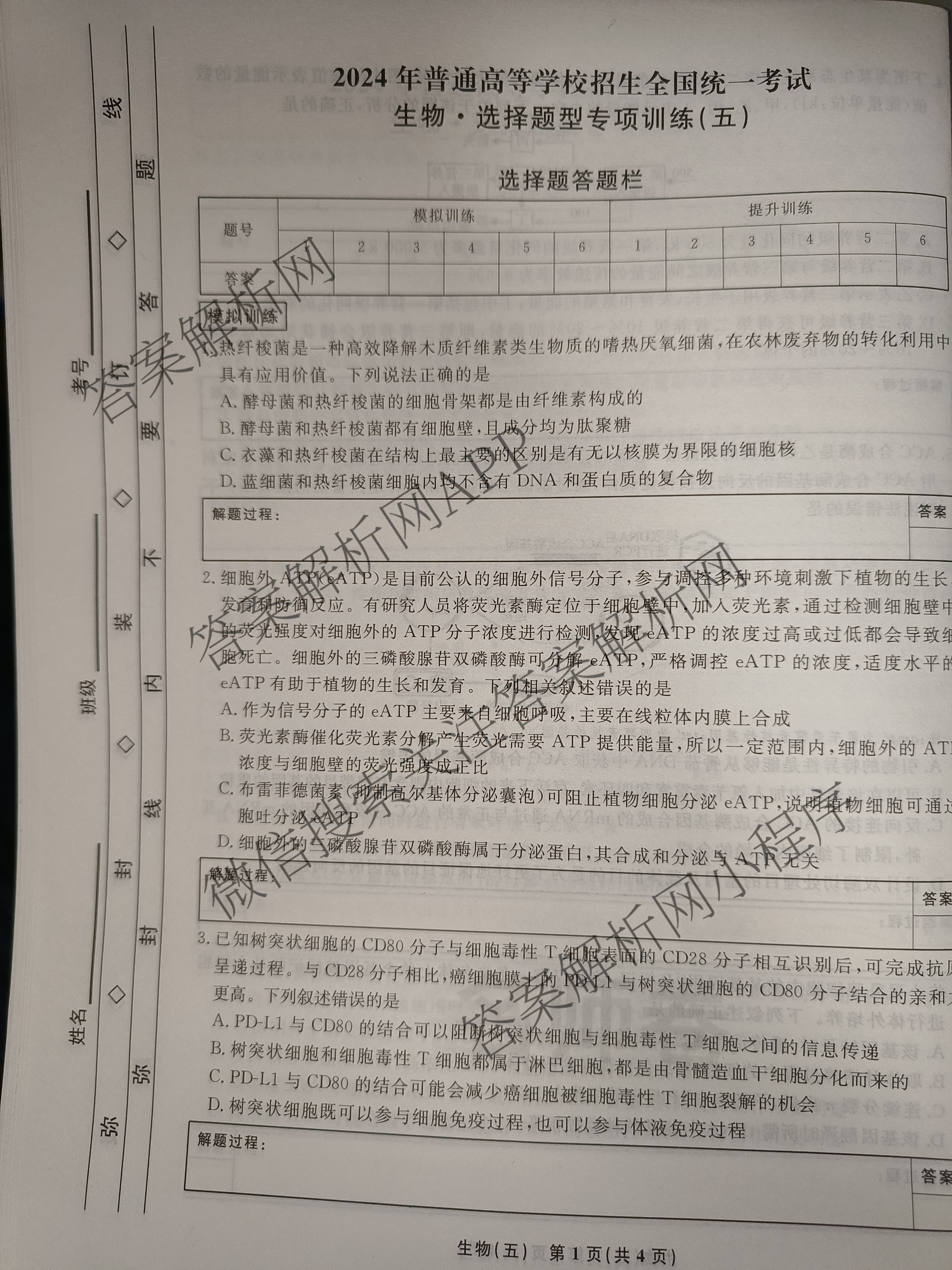 衡水名师卷2024年普通高等学校招生全国统一考试 选择题型专项训练 生物(五)5试题