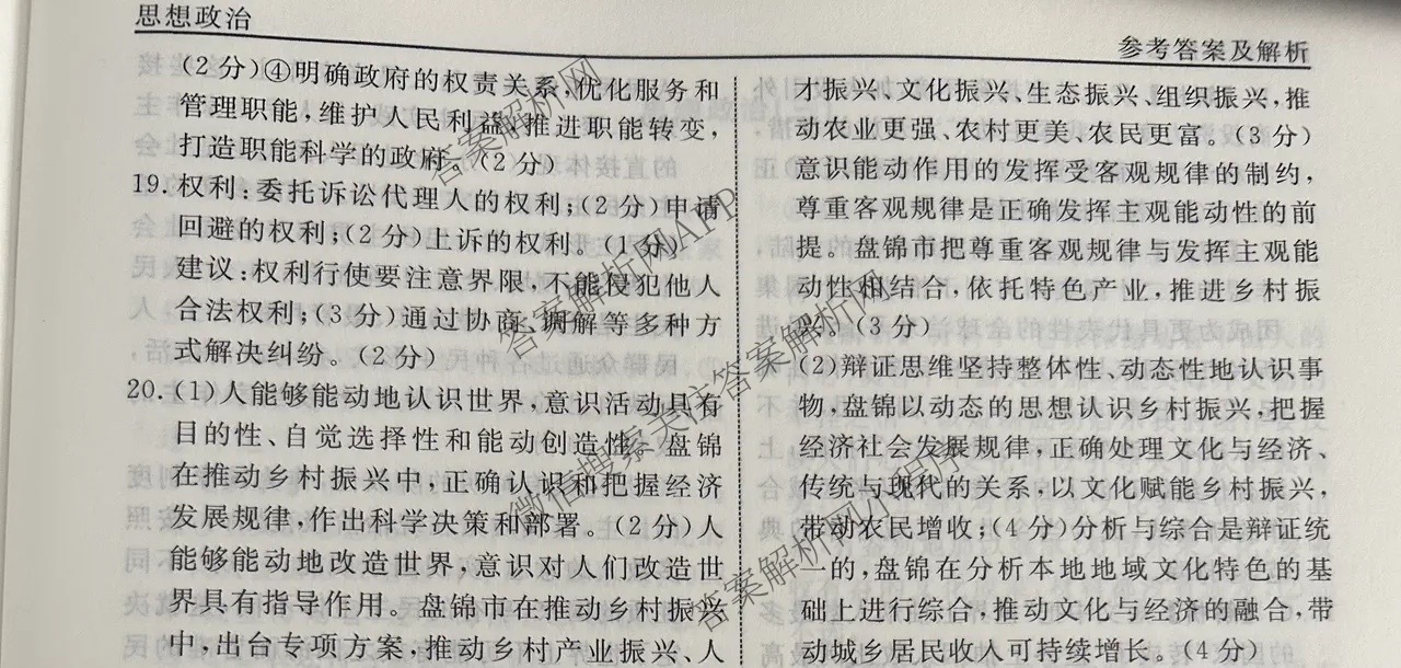 - (衡水名师卷)·高考模拟信息卷 2024年全省普通高中学业水平等级考试模拟 政治(空心◇山东省)(一)1答案