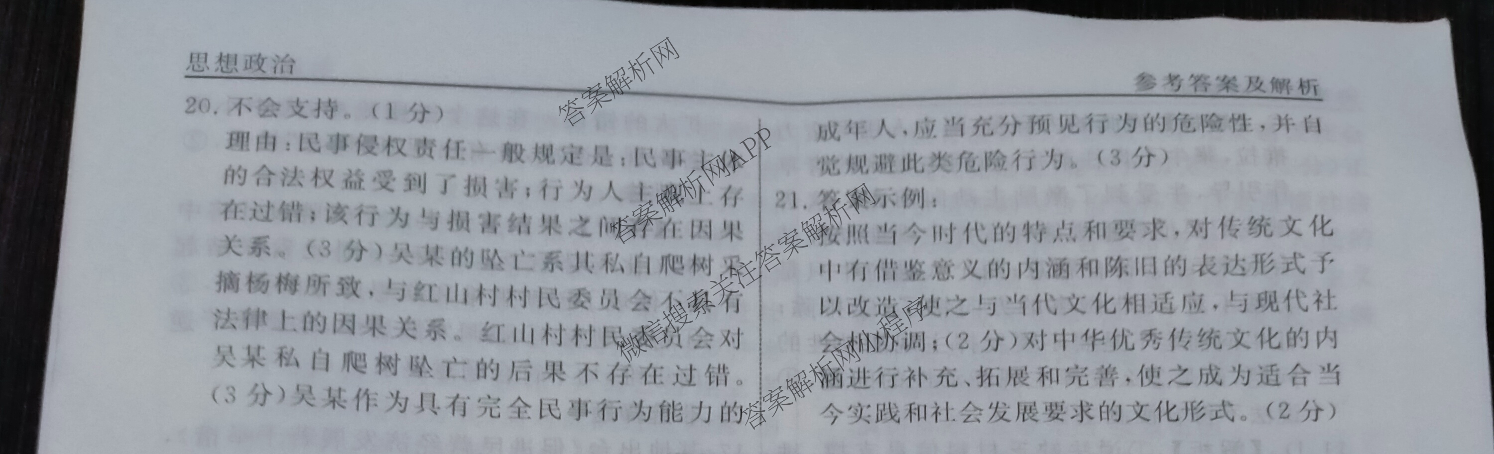 衡水名师卷高考模拟信息卷 2024年普通高等学校招生全国统一考试模拟 政治(双菱形)(三)3答案