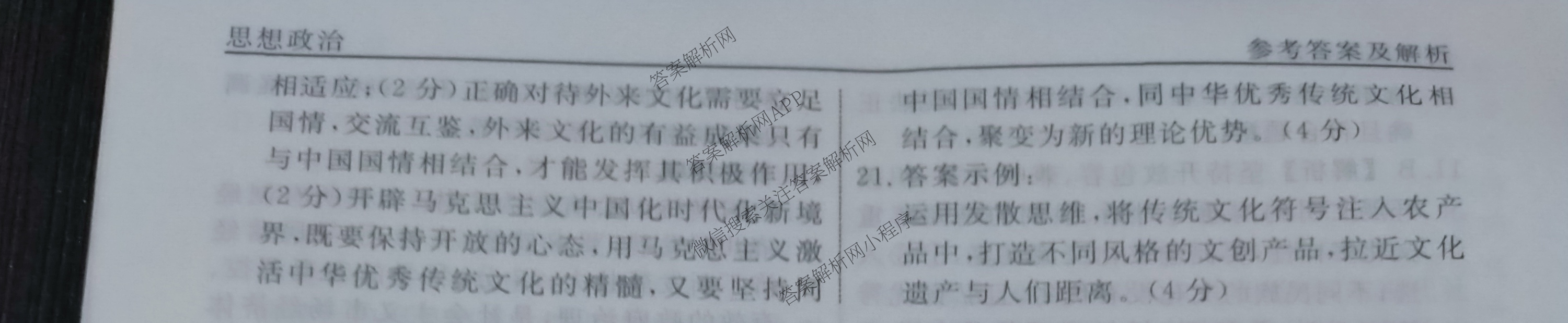 衡水名师卷高考模拟信息卷 2024年普通高等学校招生全国统一考试模拟 政治(双菱形)(二)2答案