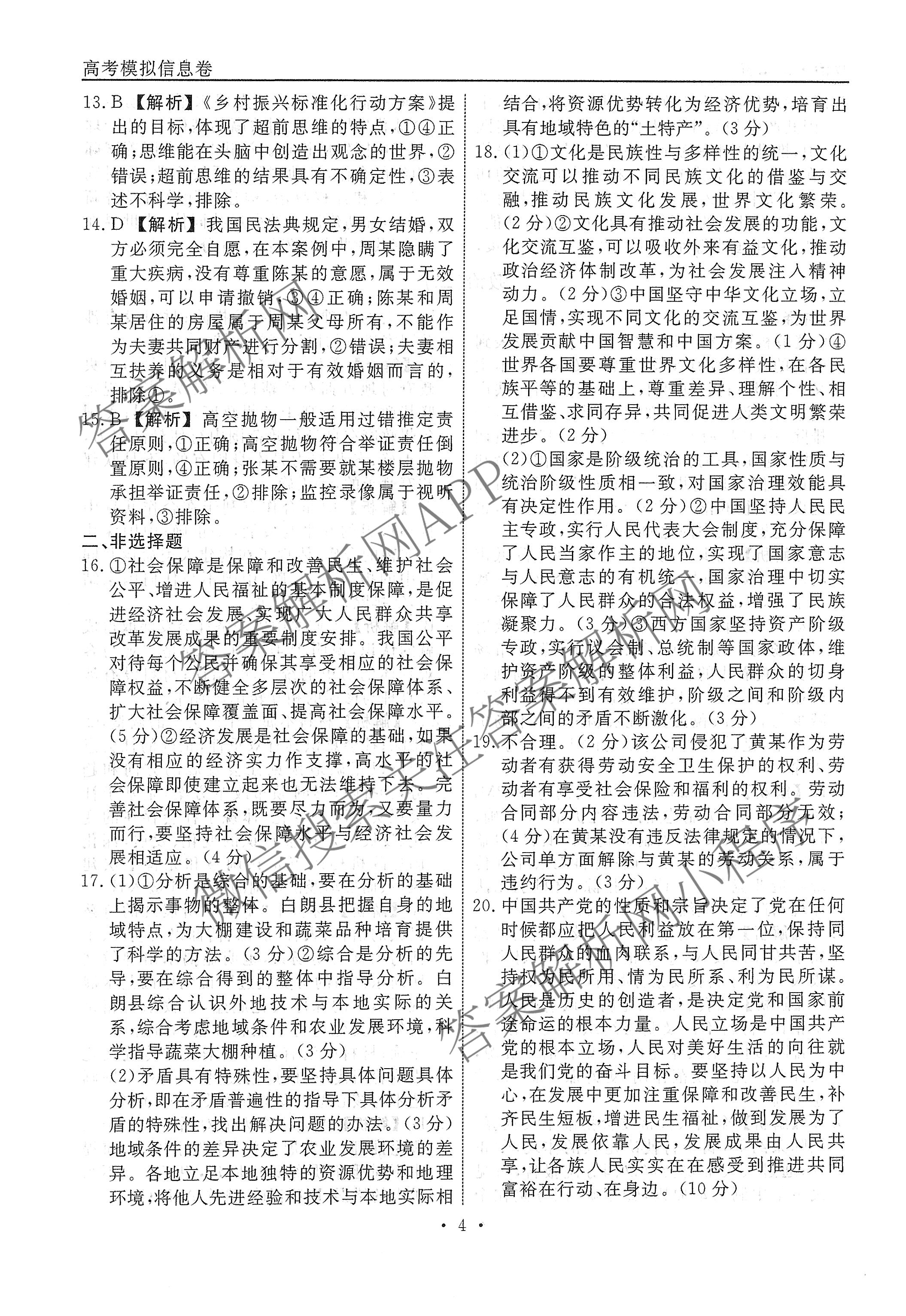 衡水名师卷高考模拟信息卷 2024年全省普通高中学业水平等级考试模拟 政治(空心◇山东省)(二)2答案