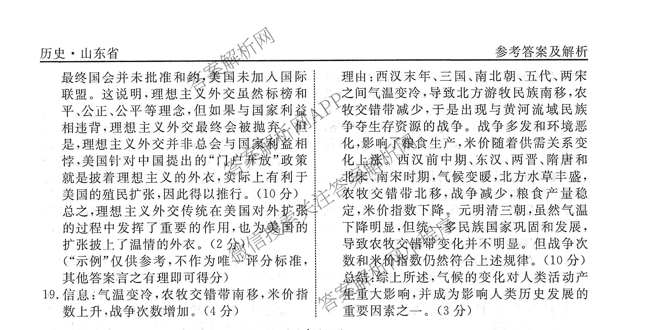 (衡水名师卷)高考模拟信息卷 2024年全省普通高中学业水平等级考试模拟 历史(空心◇山东省)(一)1答案