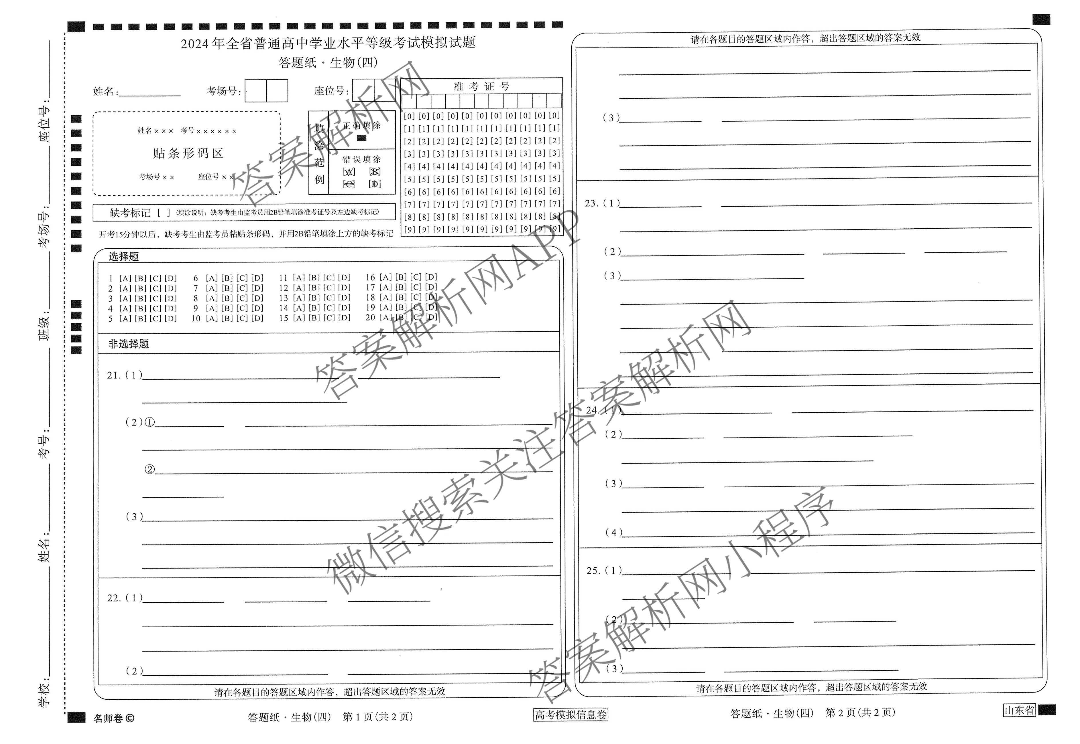 衡水名师卷·高考模拟信息卷 2024年全省普通高中学业水平等级考试模拟 生物(空心◇山东省)(四)4试题,目前分科卷答案网已经汇总了衡水名师卷·高考模拟信息卷 2024年全省普通高中学业水平等级考试模拟 生物(空心◇山东省)(四)4试题的各科答案和试卷,获取更多衡水名师卷答案解析,请在关注本站。