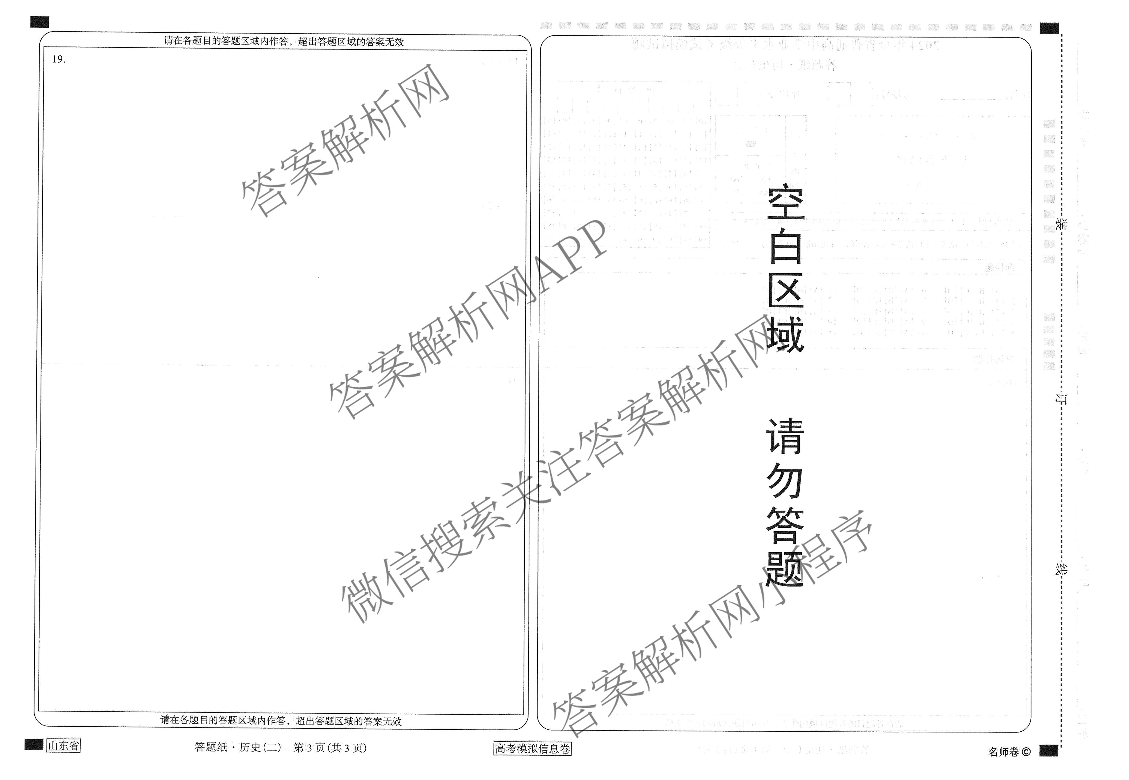 衡水名师卷高考模拟信息卷 2024年全省普通高中学业水平等级考试模拟 历史(空心◇山东省)(二)2试题